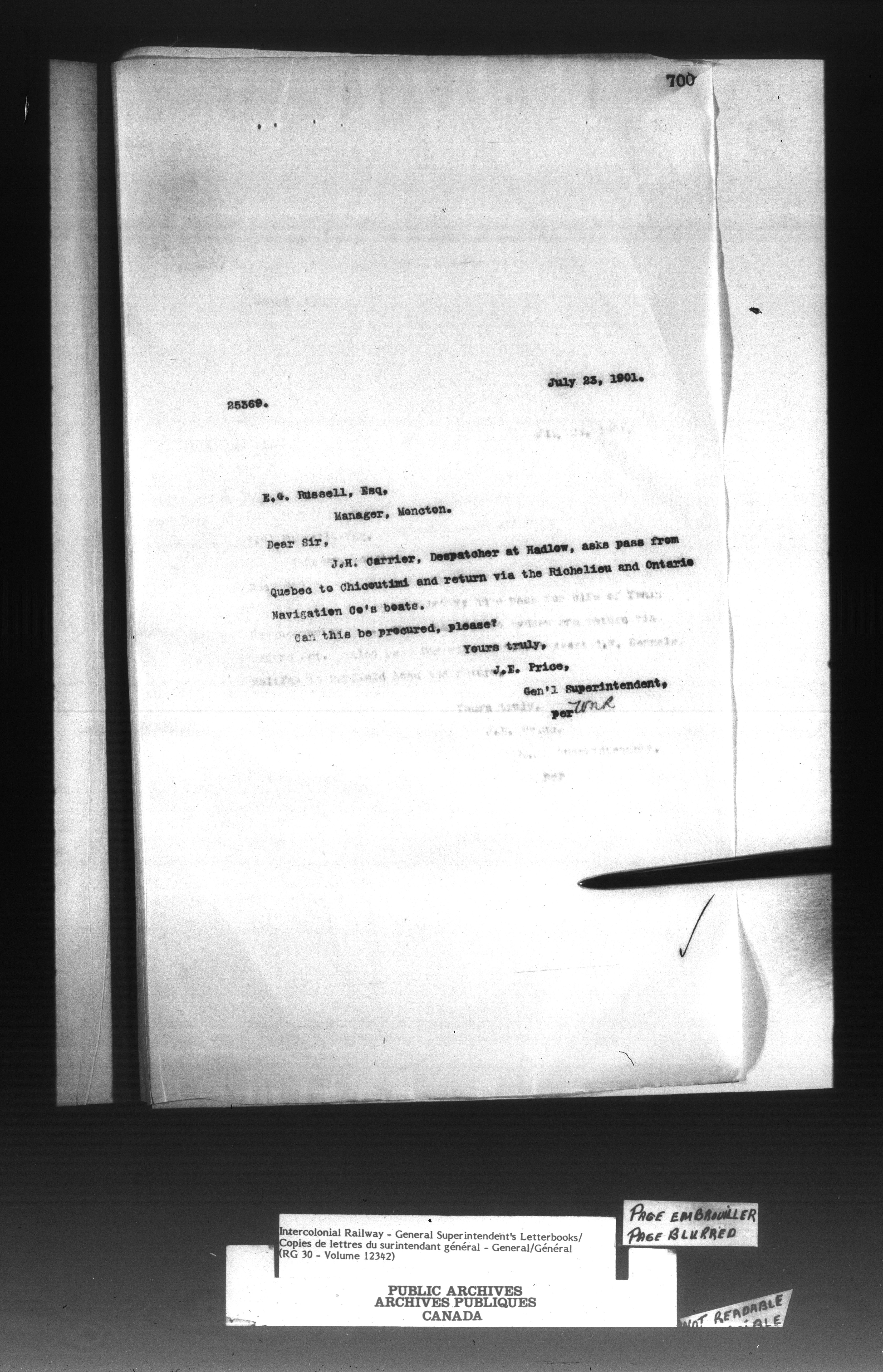 Canadian Government Railways : Office of the General Superintendent correspondence : C-13034