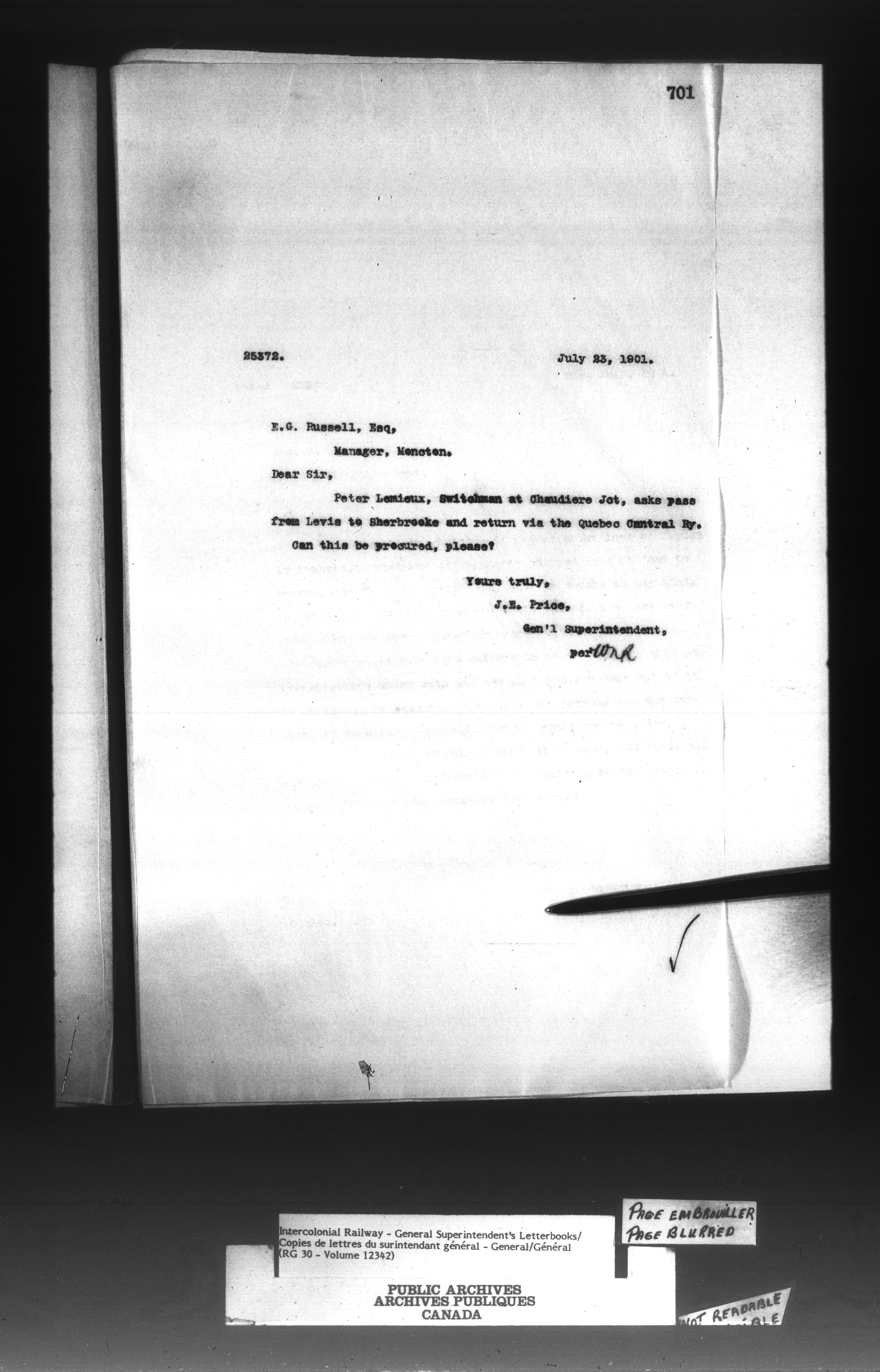 Canadian Government Railways : Office of the General Superintendent - 13034
