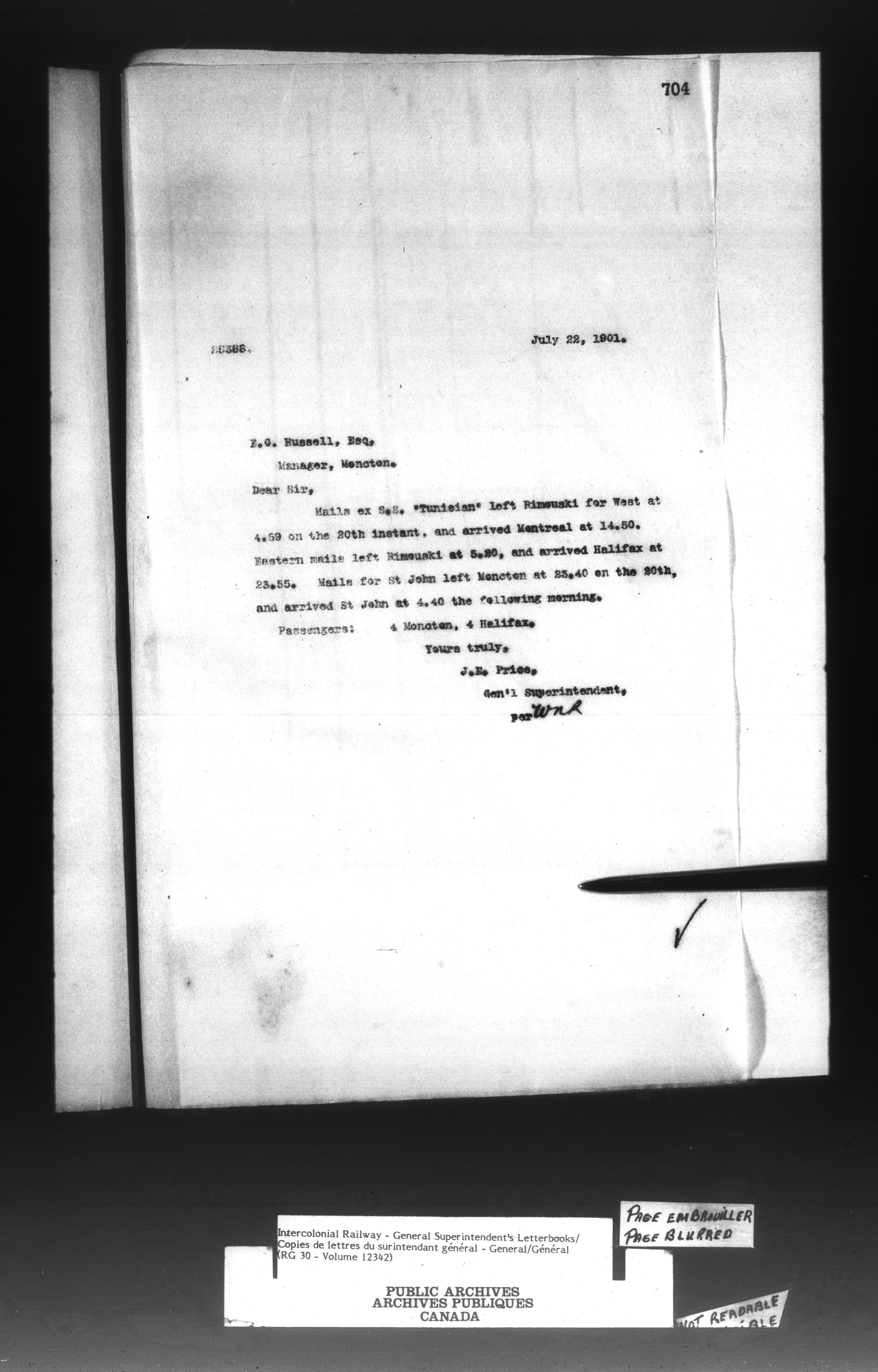 Canadian Government Railways : Office of the General Superintendent correspondence : C-13034
