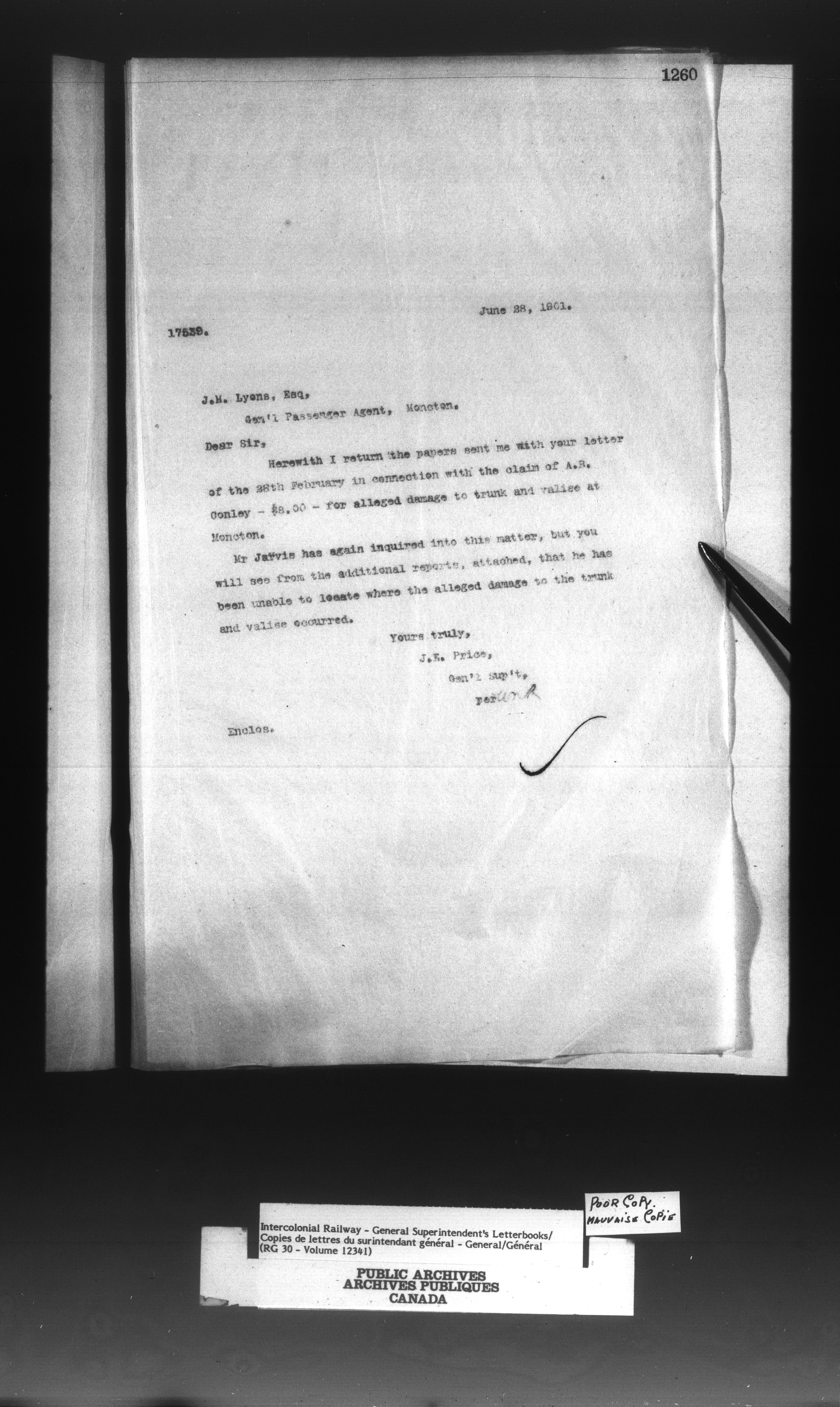 Canadian Government Railways : Office of the General Superintendent - 13034