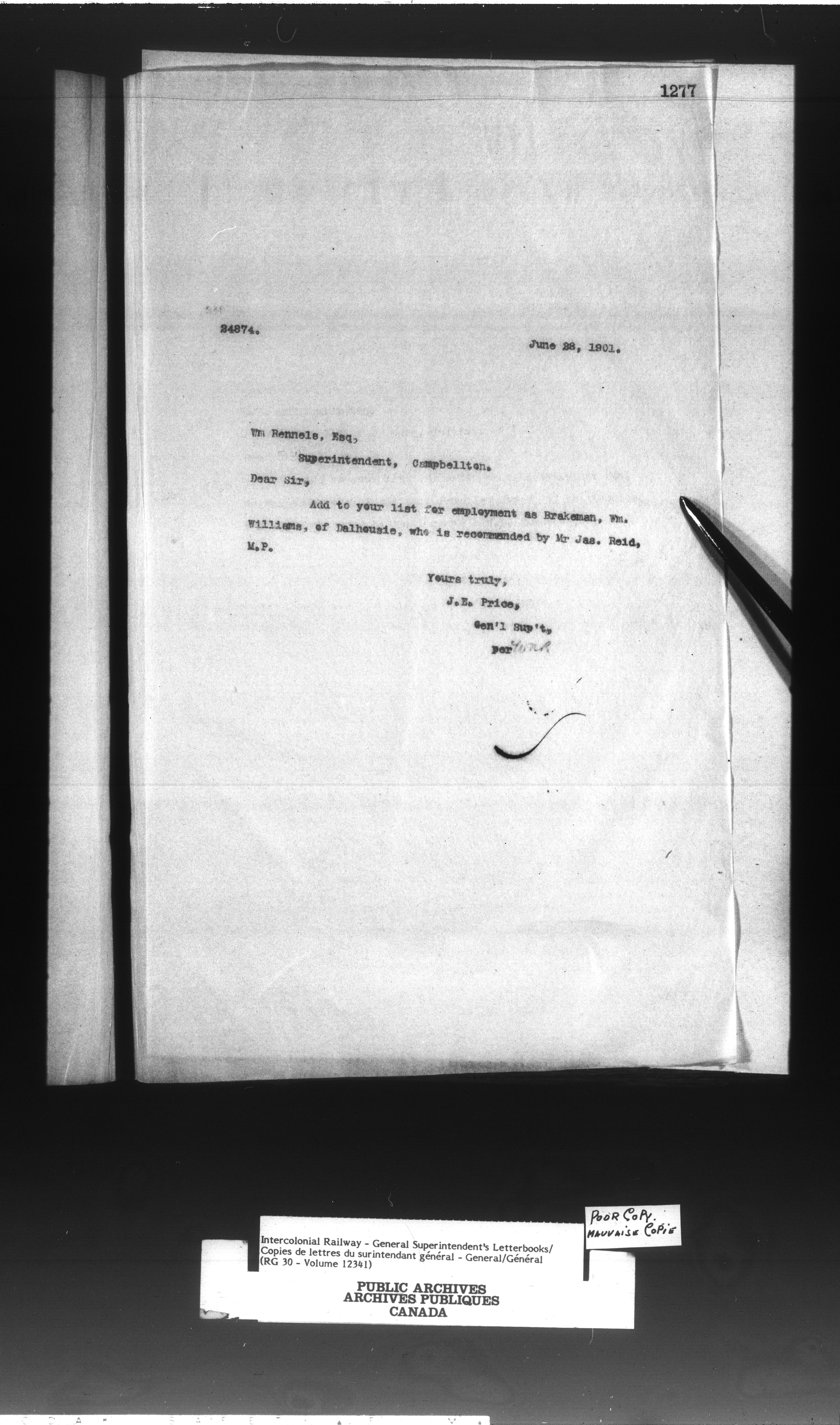 Canadian Government Railways : Office of the General Superintendent - 13034