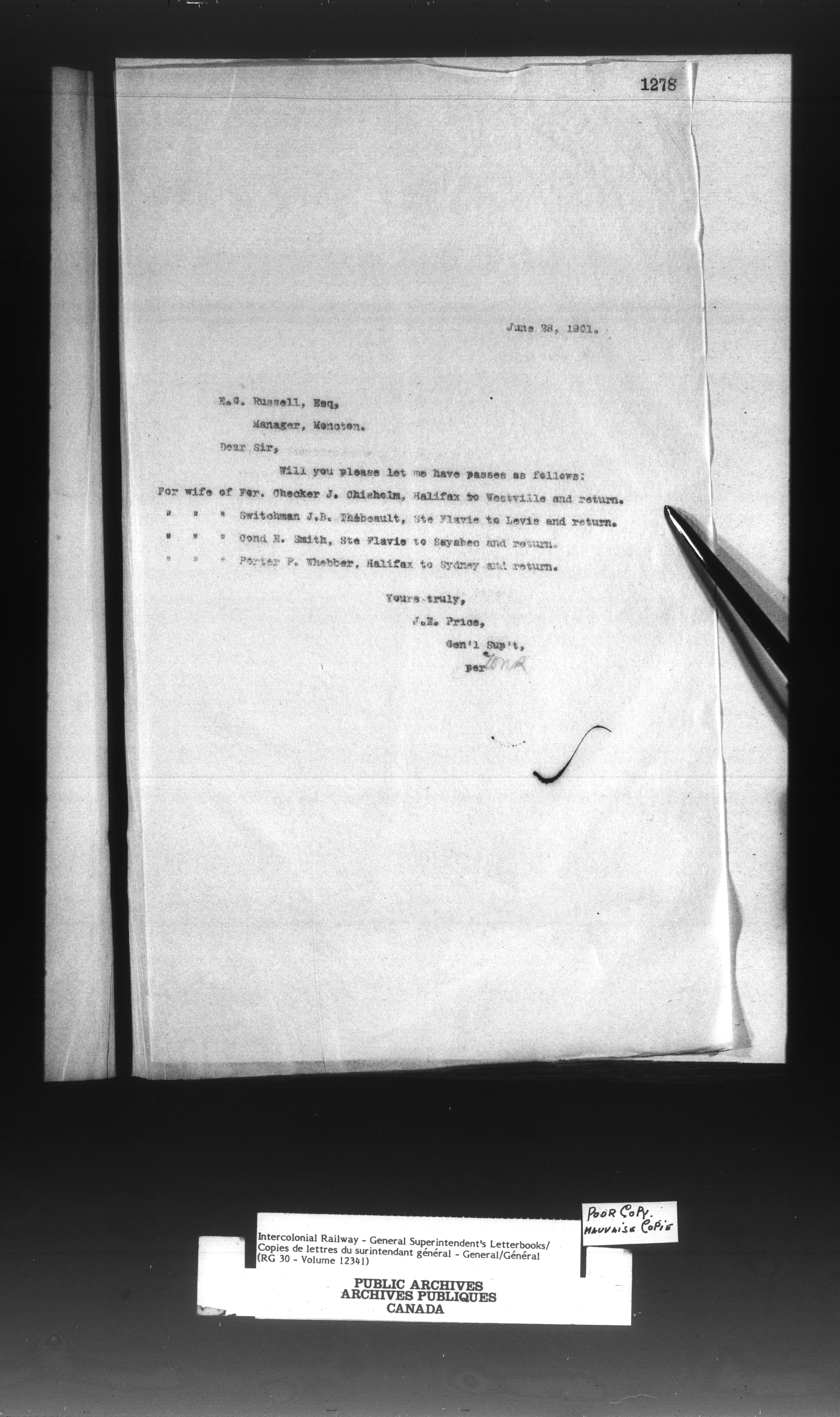 Canadian Government Railways : Office of the General Superintendent - 13034