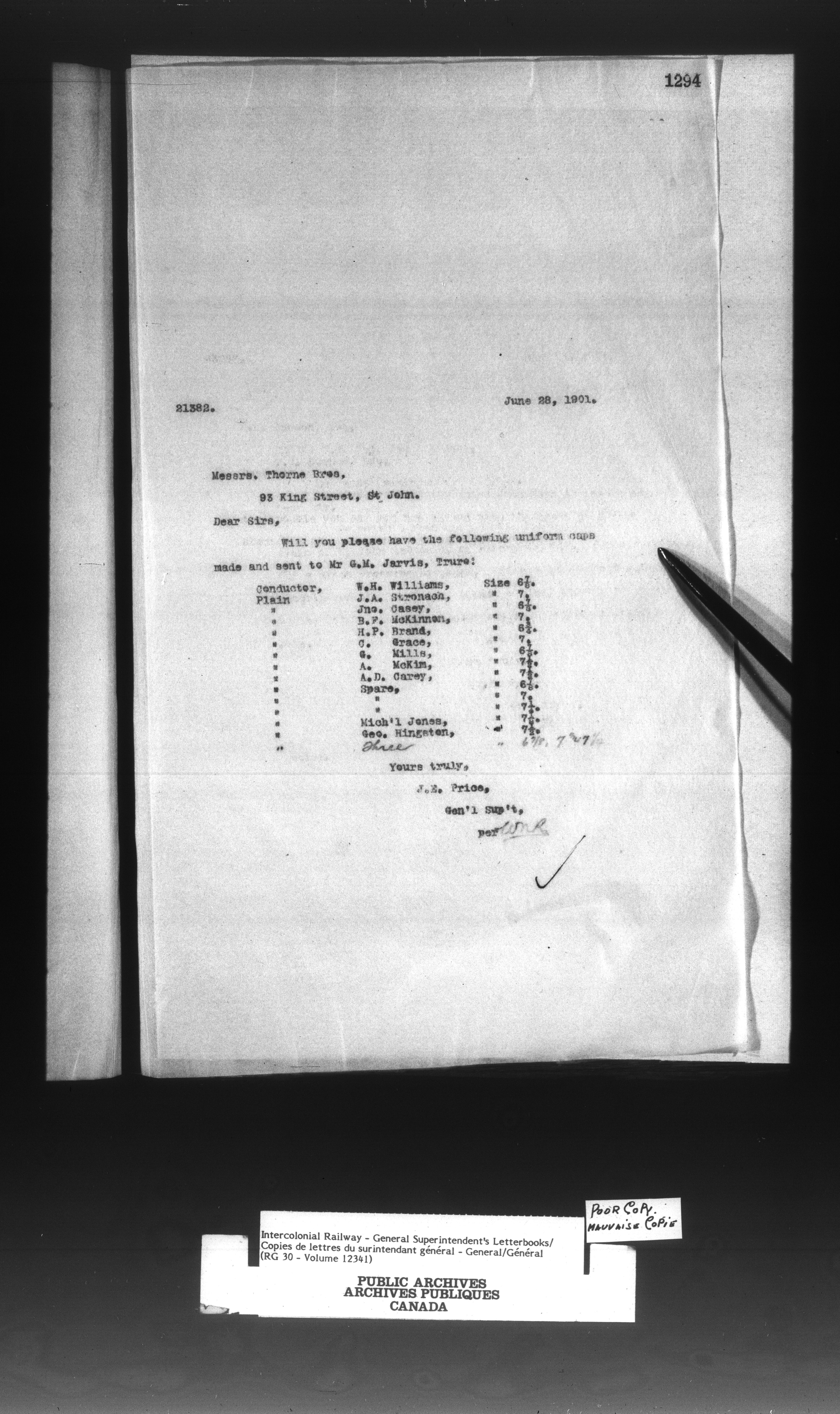 Canadian Government Railways : Office of the General Superintendent - 13034