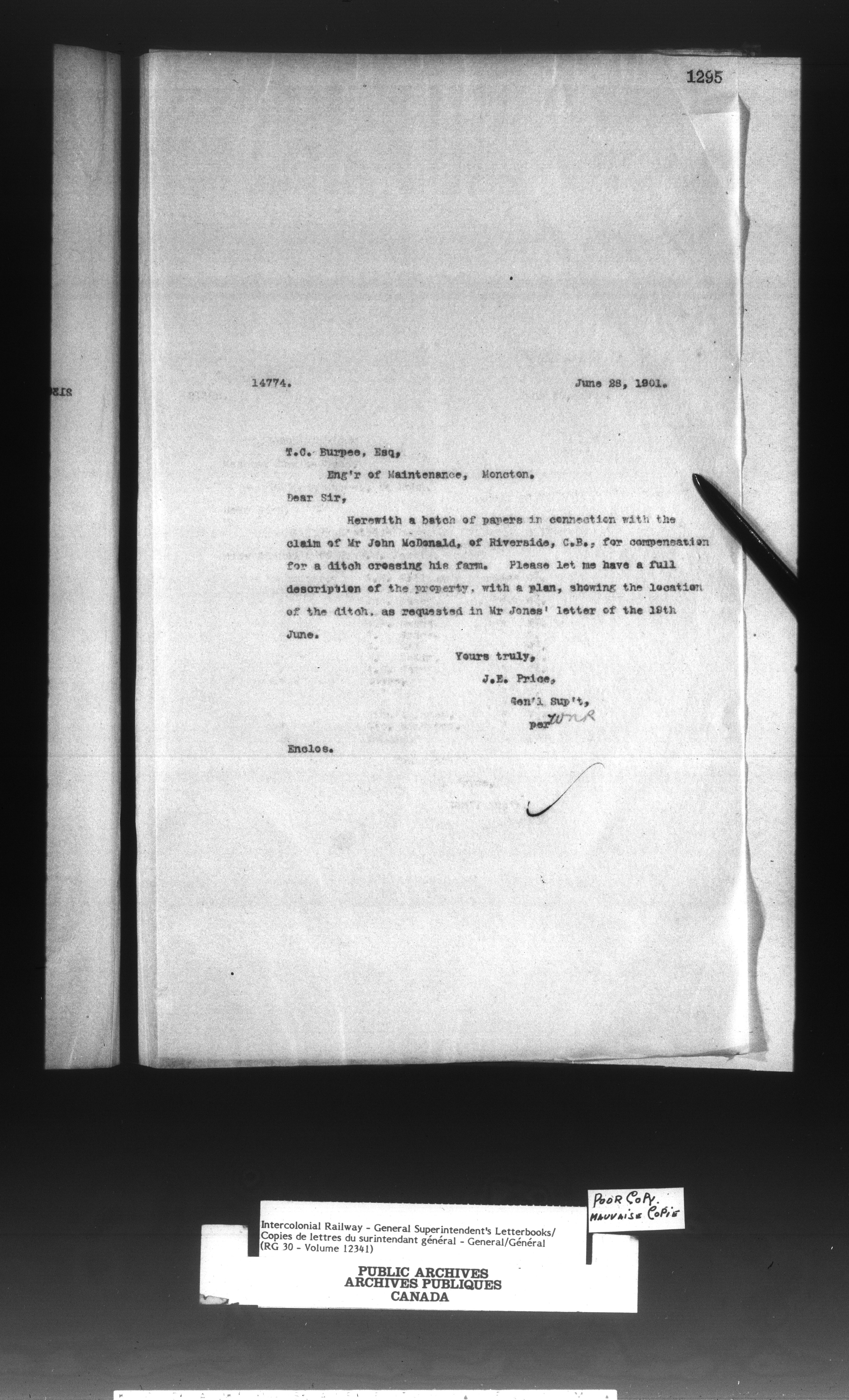 Canadian Government Railways : Office of the General Superintendent correspondence : C-13034