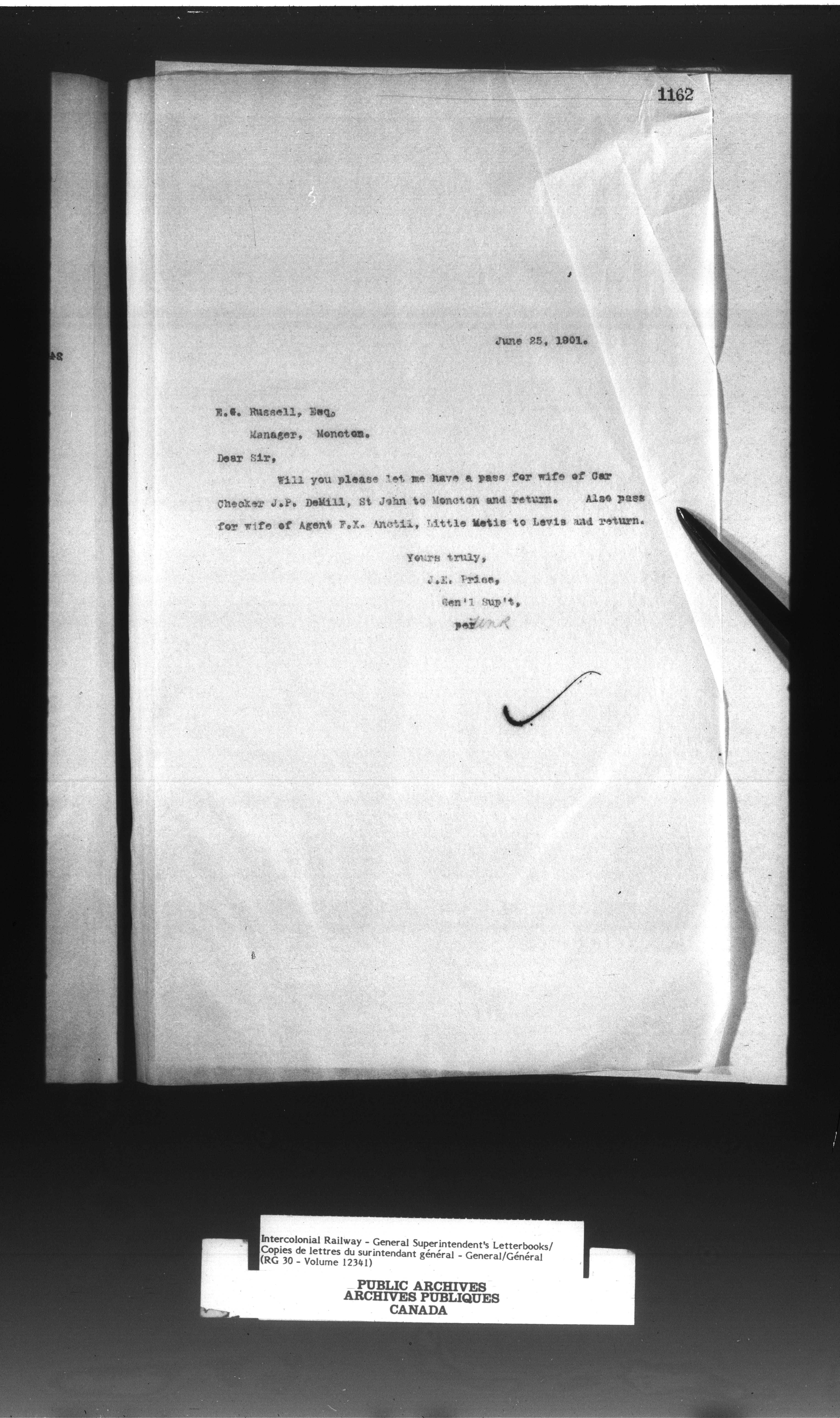 Canadian Government Railways : Office of the General Superintendent correspondence : C-13034