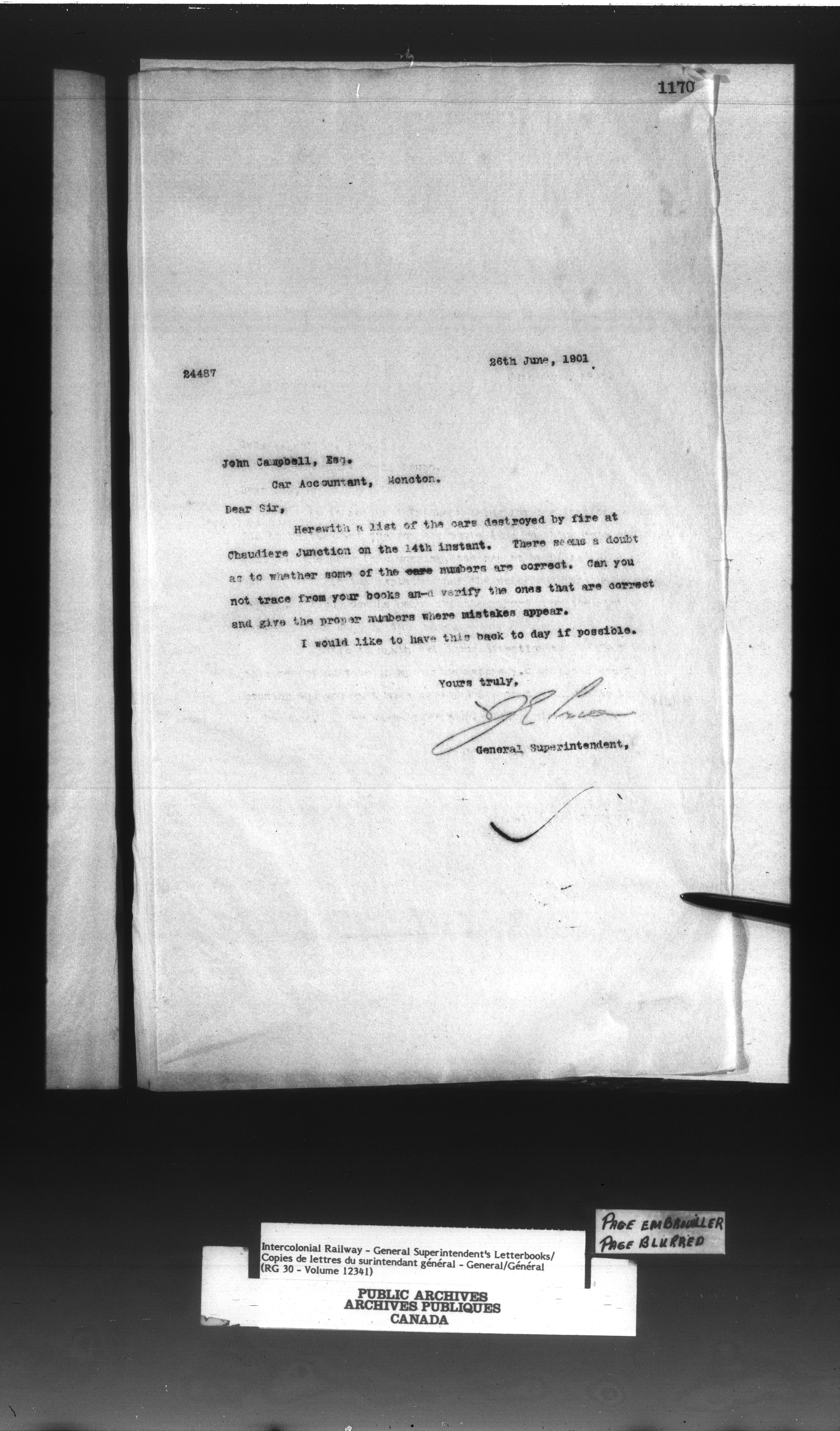 Canadian Government Railways : Office of the General Superintendent - 13034