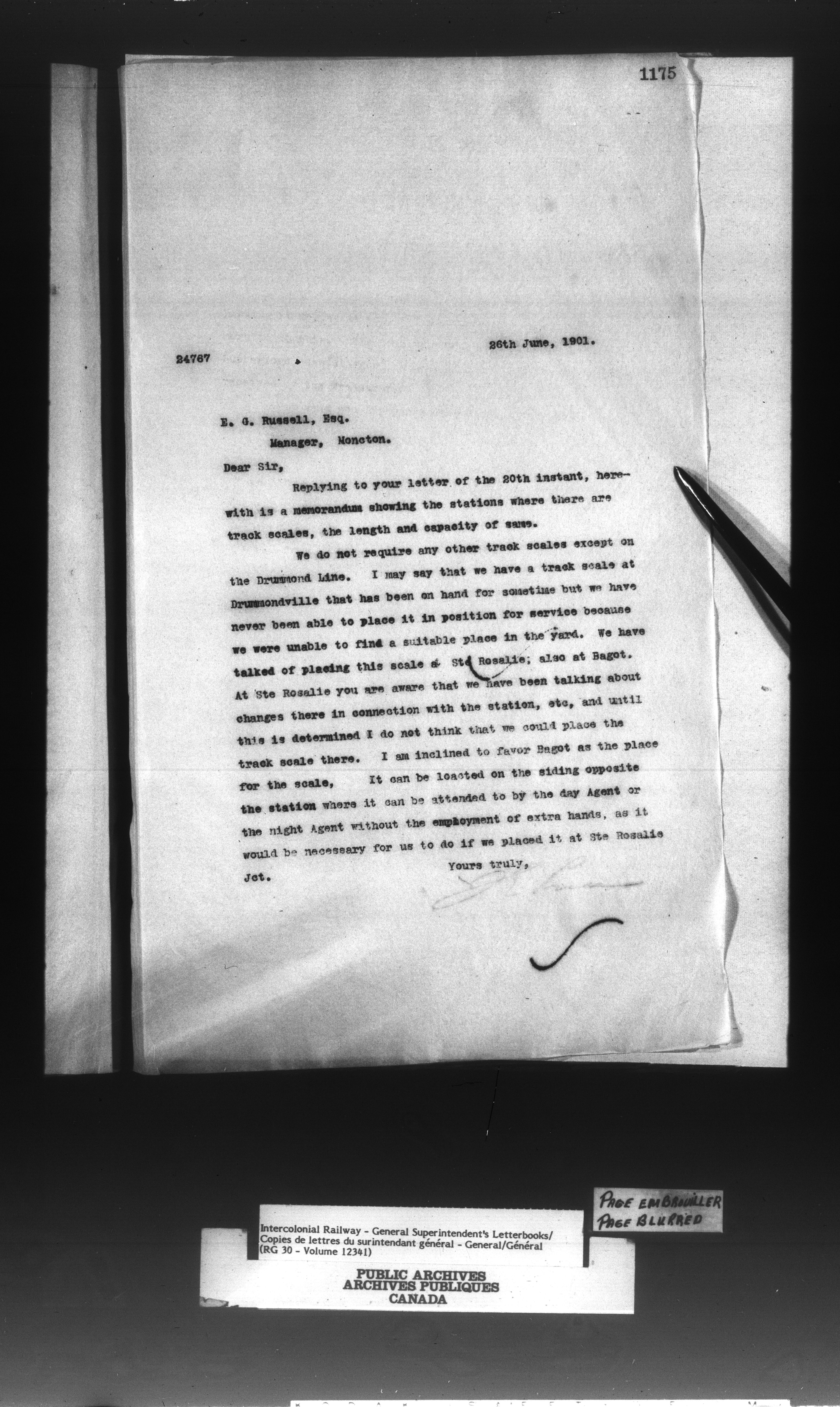 Canadian Government Railways : Office of the General Superintendent - 13034