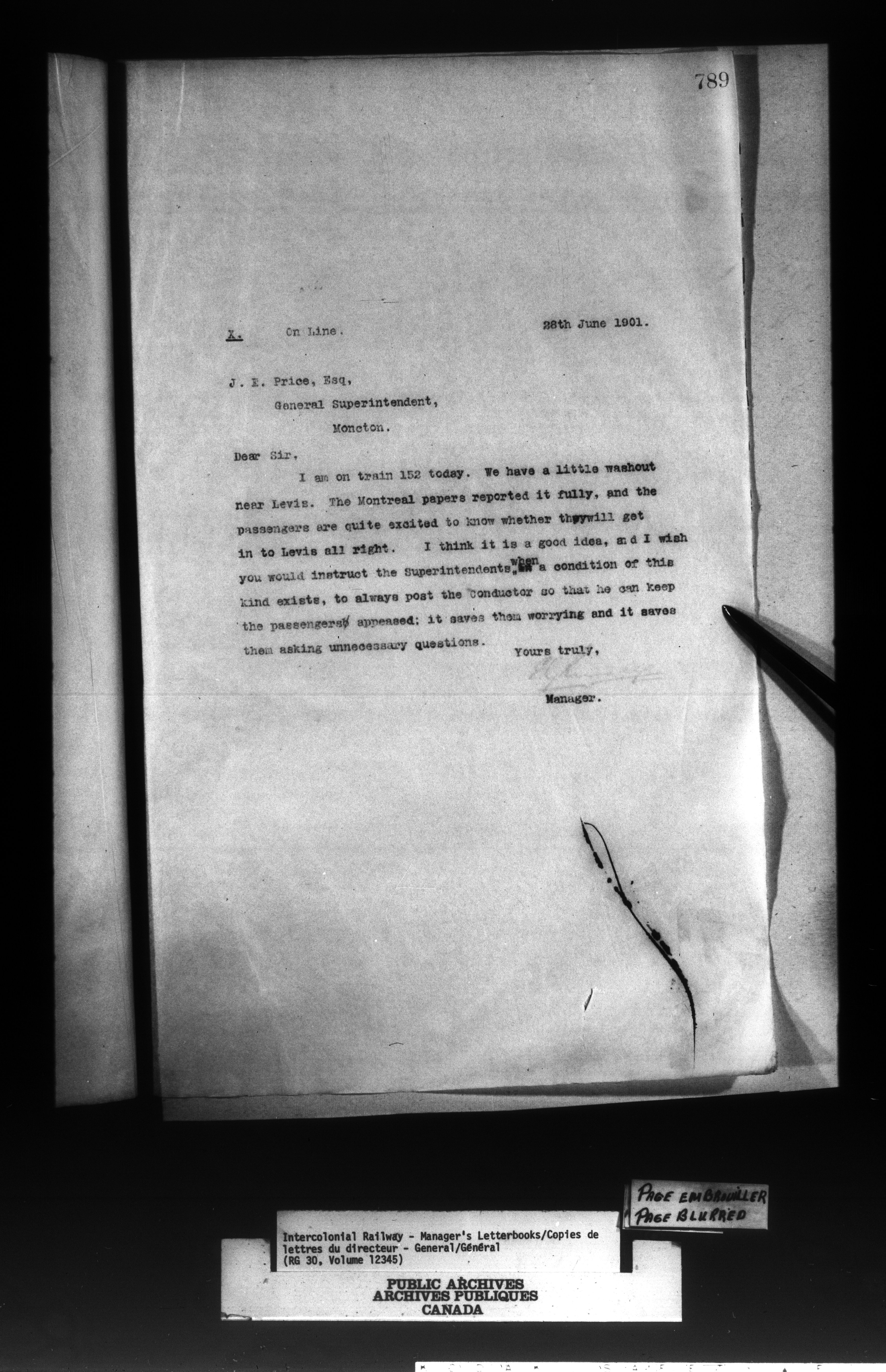 Canadian Government Railways : Office of the General Superintendent correspondence : C-13038