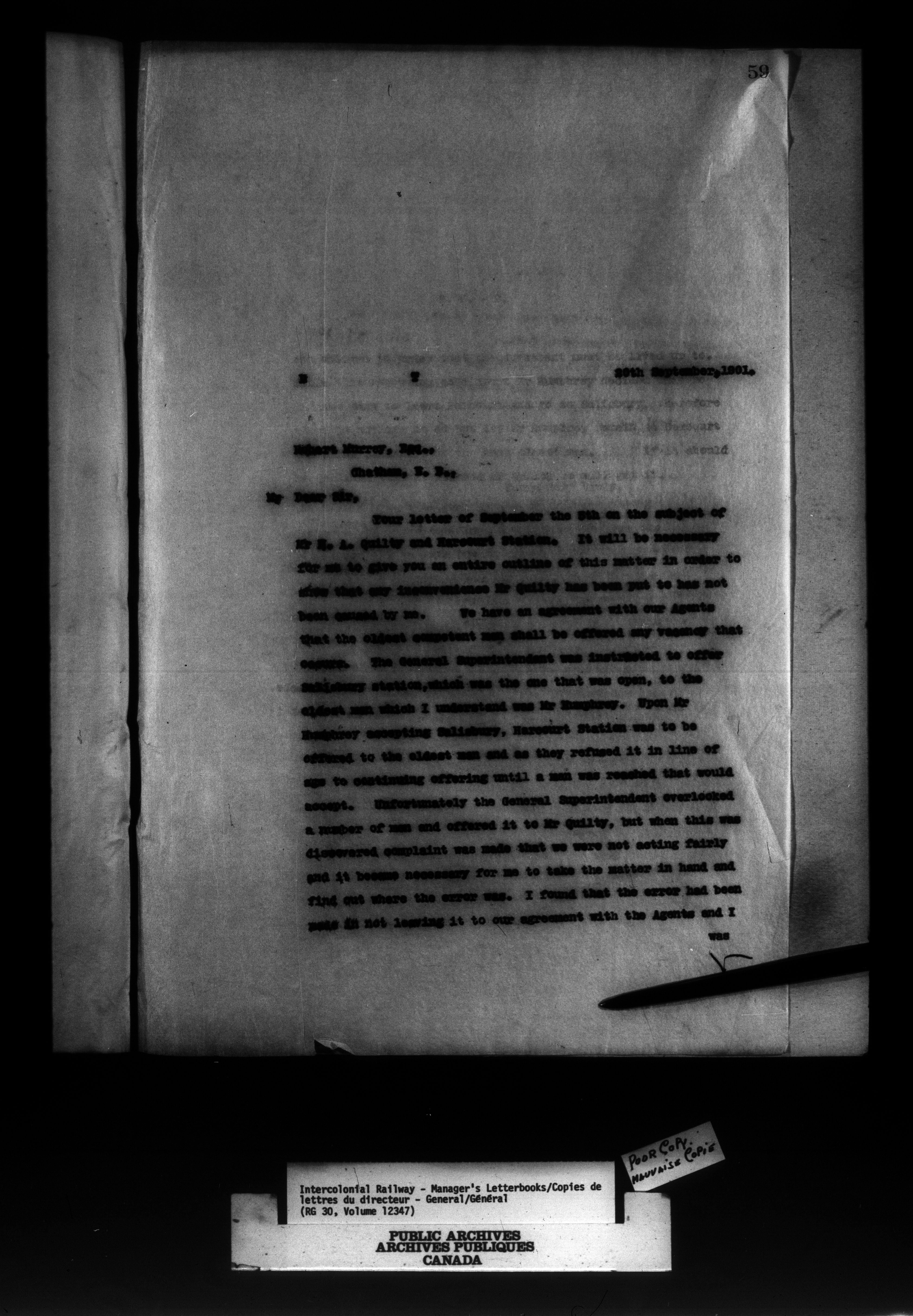 Canadian Government Railways : Office of the Manager, Outward correspondence : C-13040