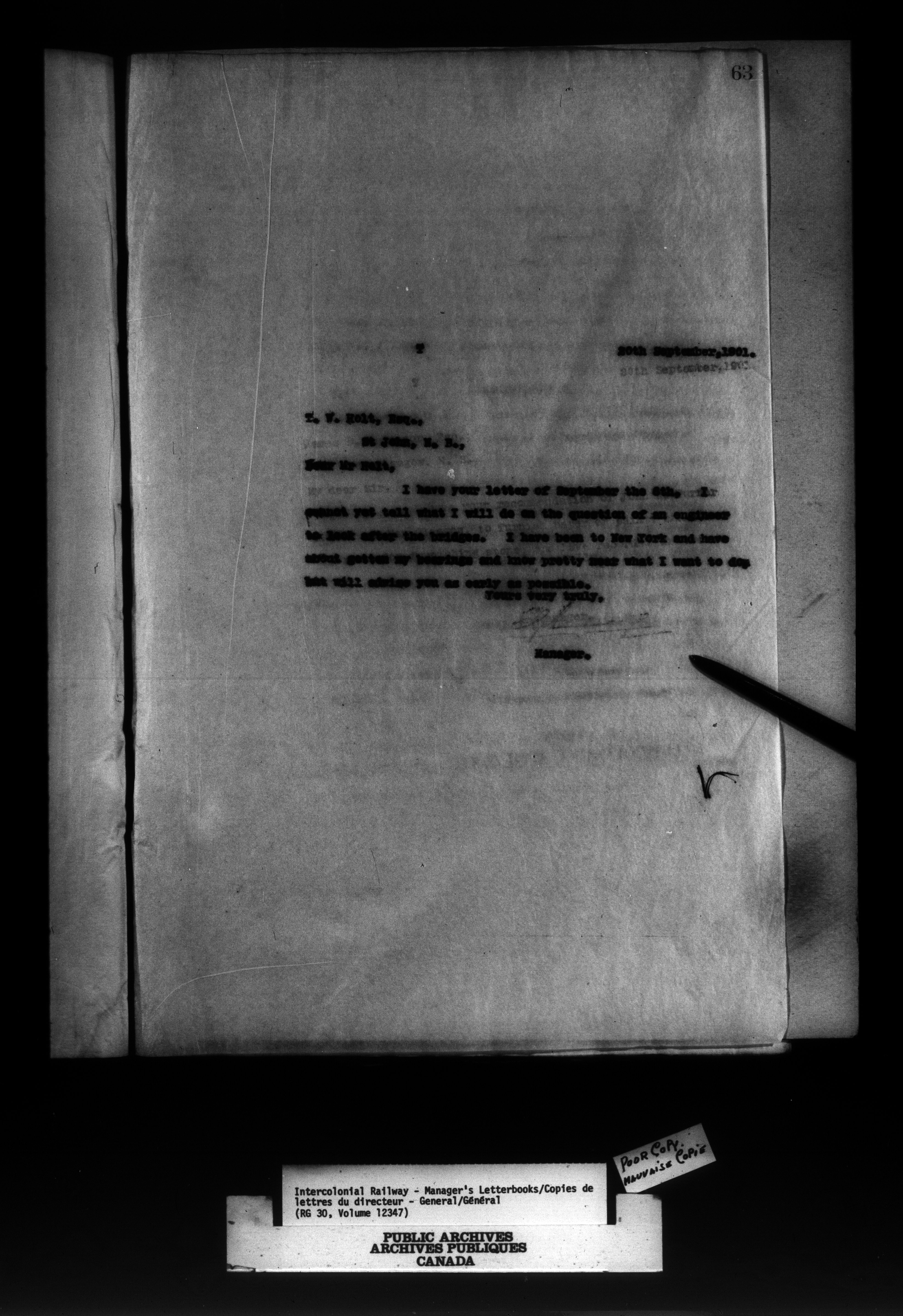 Canadian Government Railways : Office of the Manager, Outward correspondence : C-13040