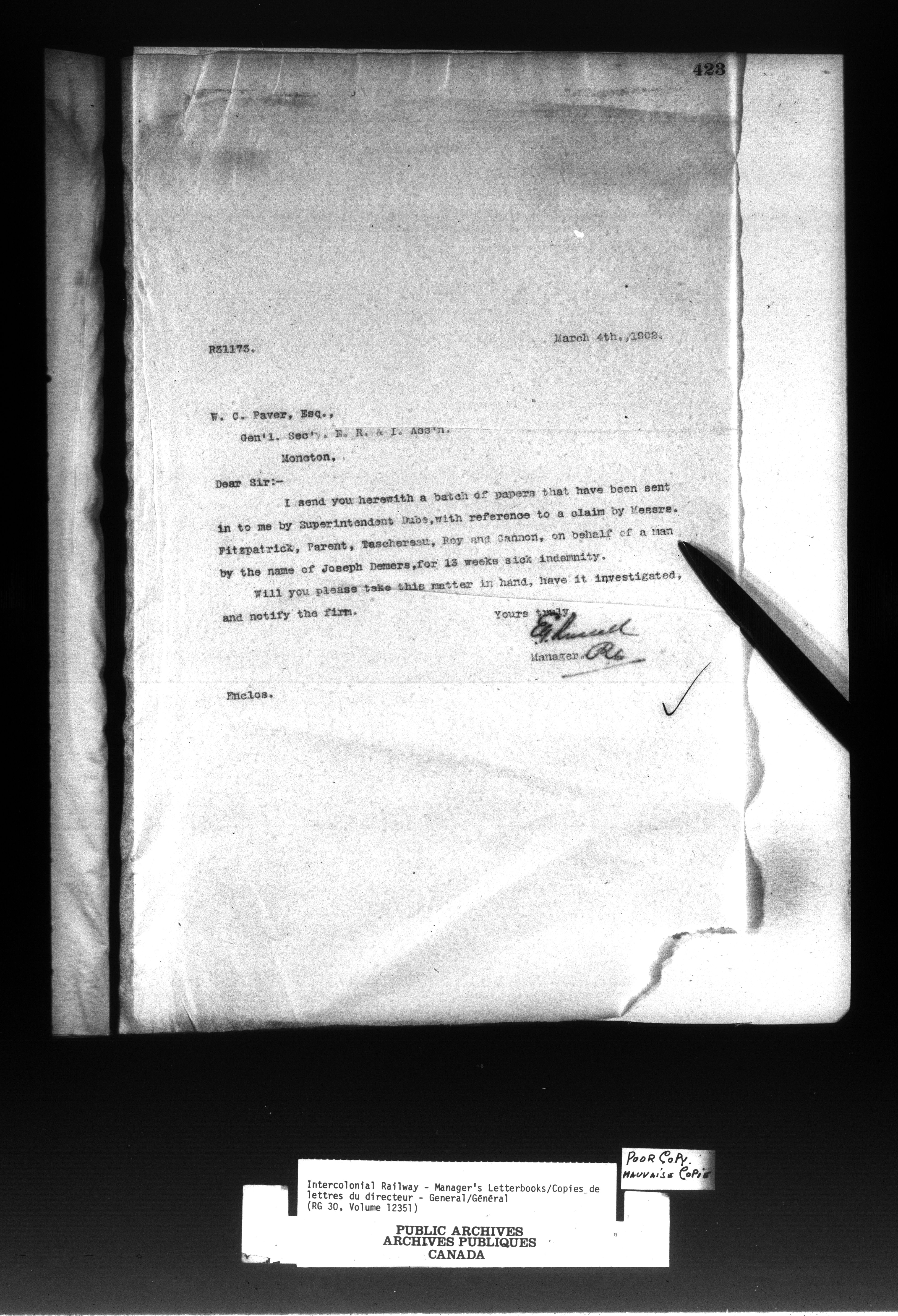Canadian Government Railways : Office of the Manager, letterbook - 13046