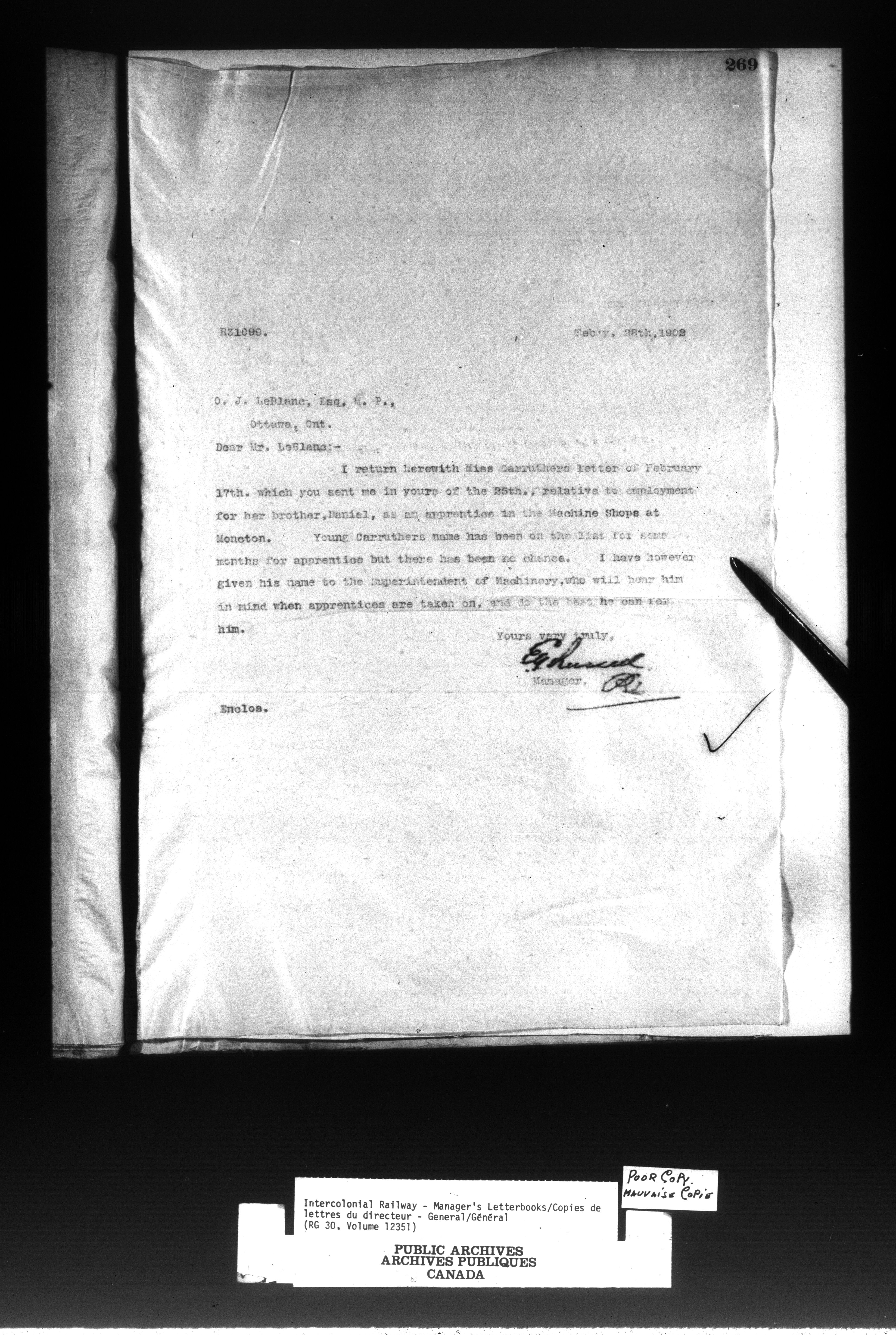 Canadian Government Railways : Office of the Manager, Outward correspondence : C-13046