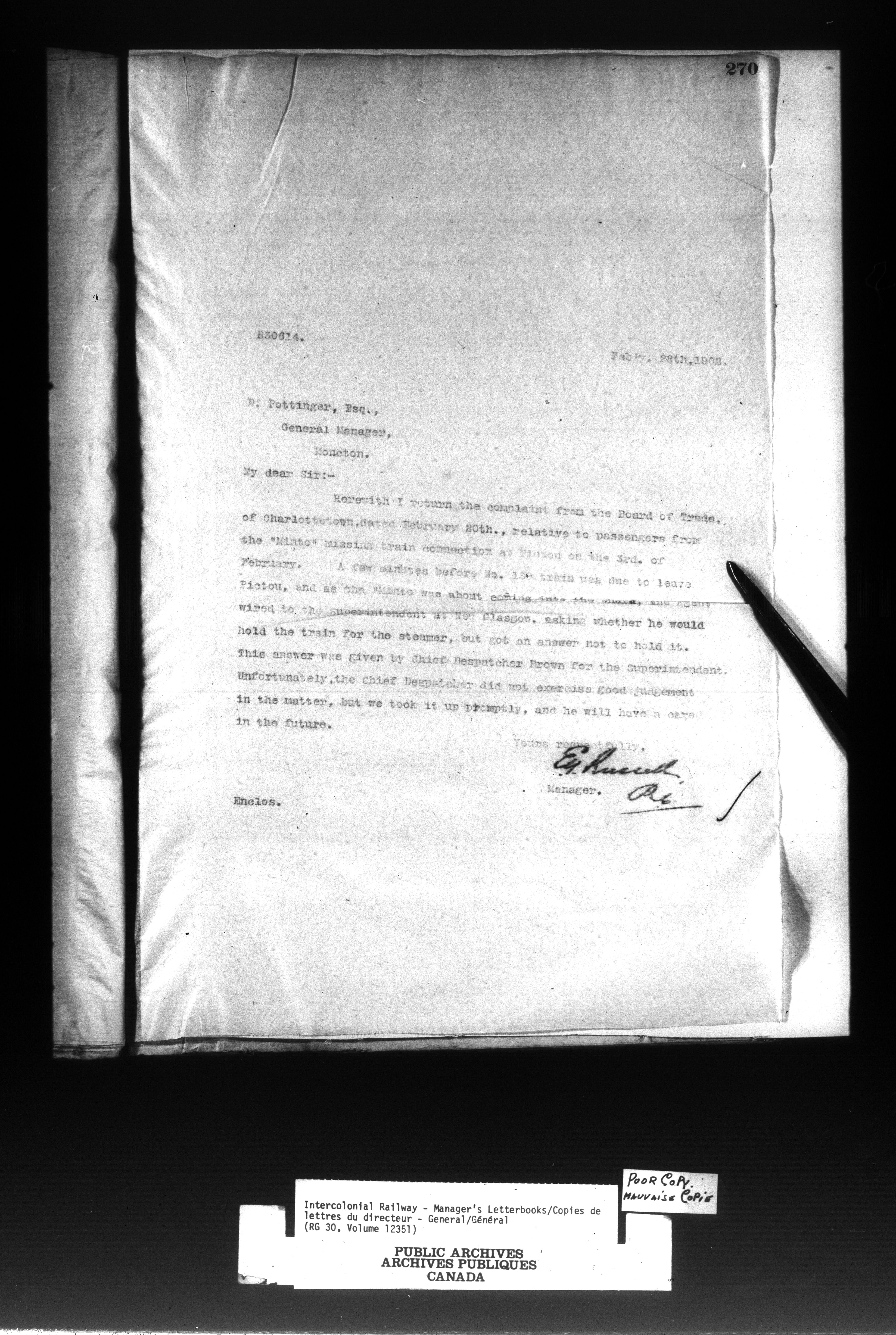Canadian Government Railways : Office of the Manager, Outward correspondence : C-13046