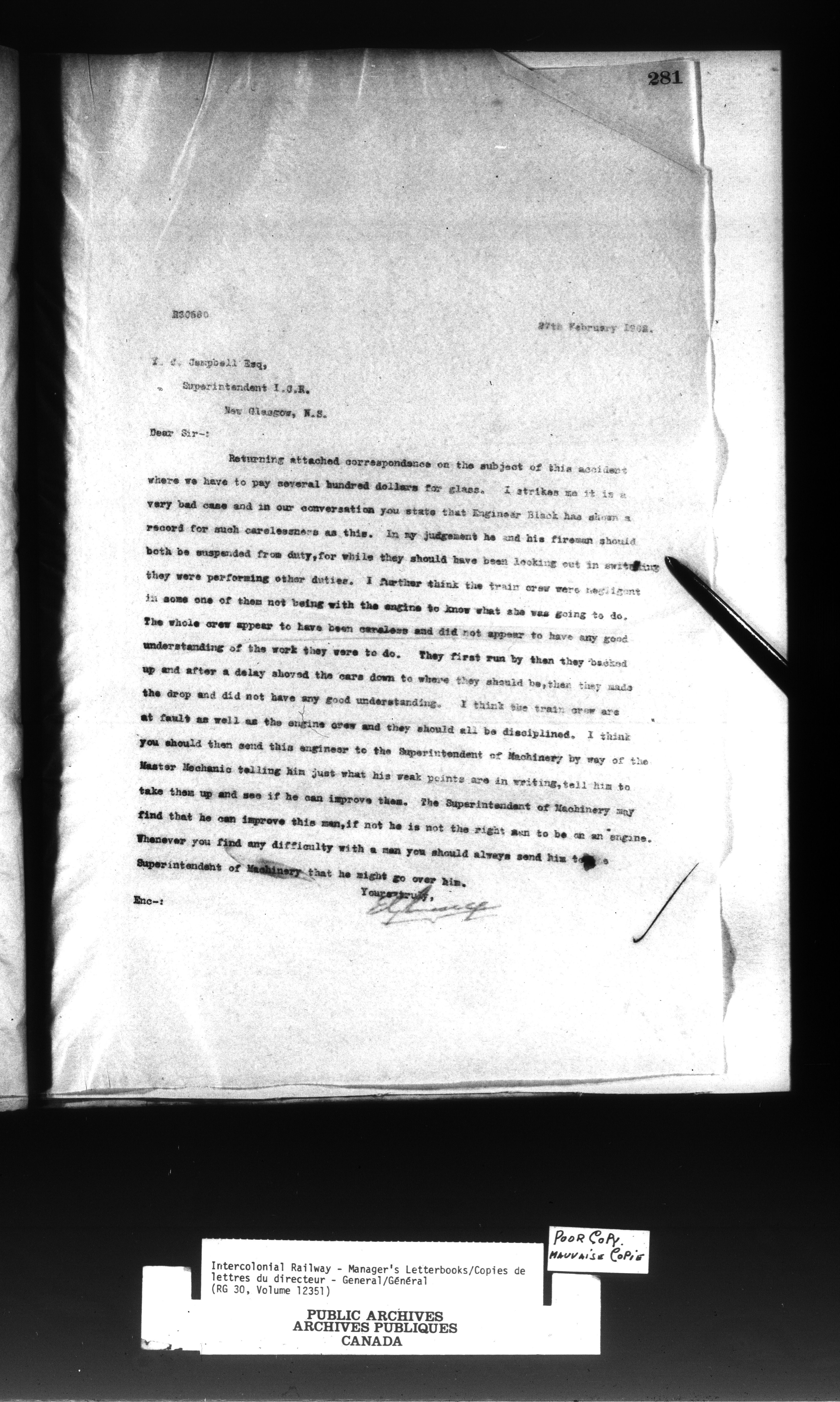 Canadian Government Railways : Office of the Manager, Outward correspondence : C-13046