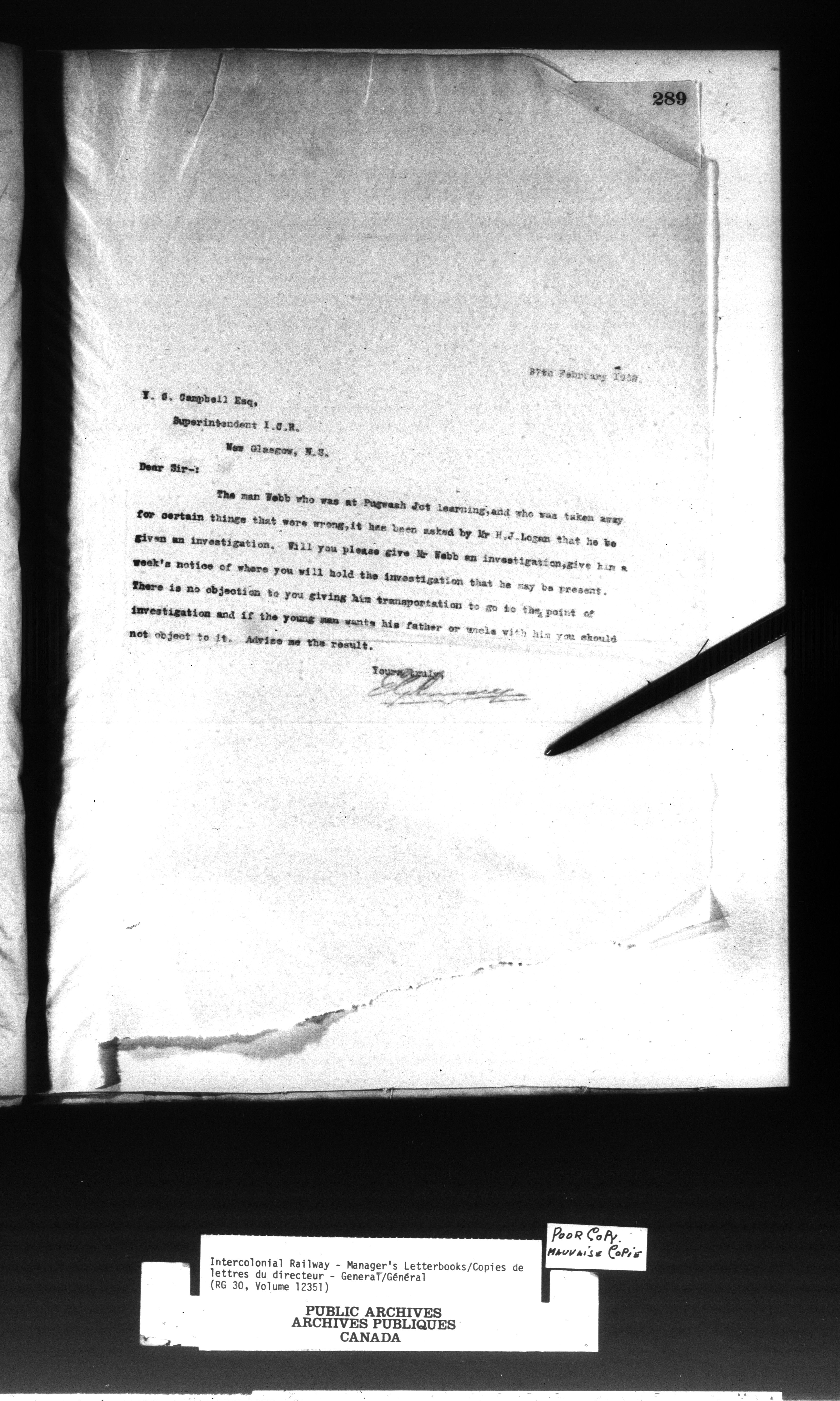 Canadian Government Railways : Office of the Manager, letterbook - 13046