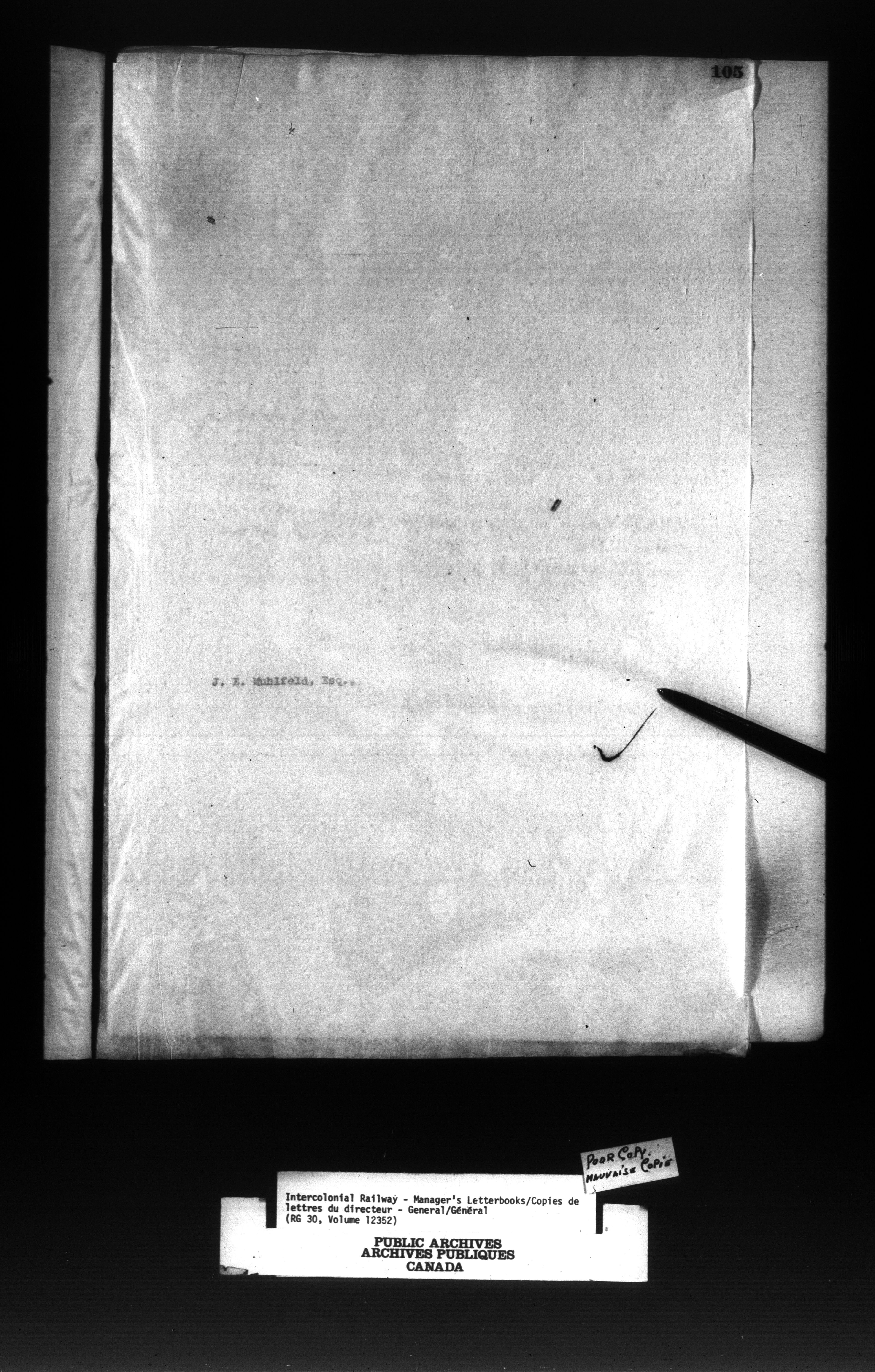 Canadian Government Railways : Office of the Manager, Outward correspondence : C-13047