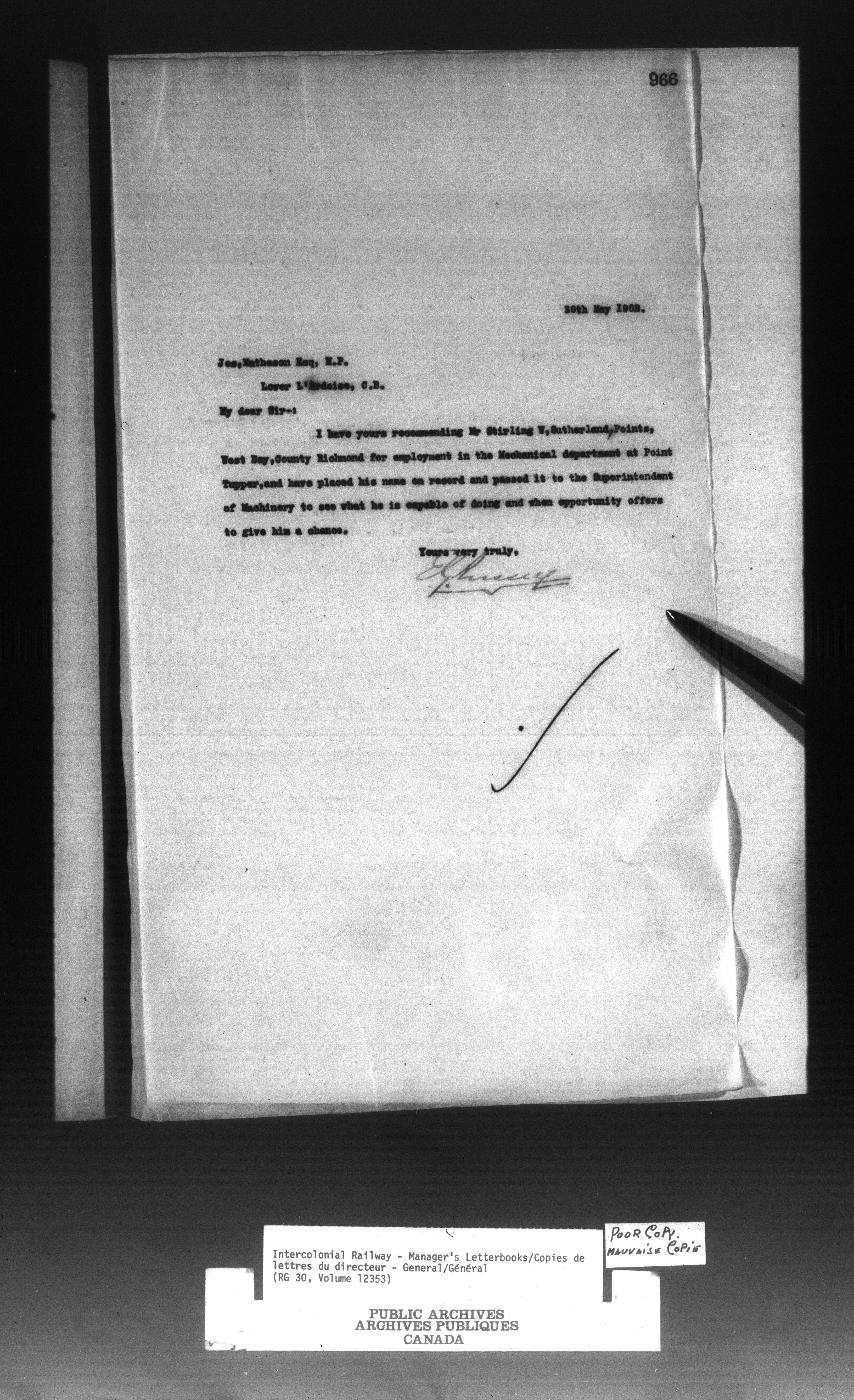 Canadian Government Railways : Office of the Manager, Outward correspondence : C-13048