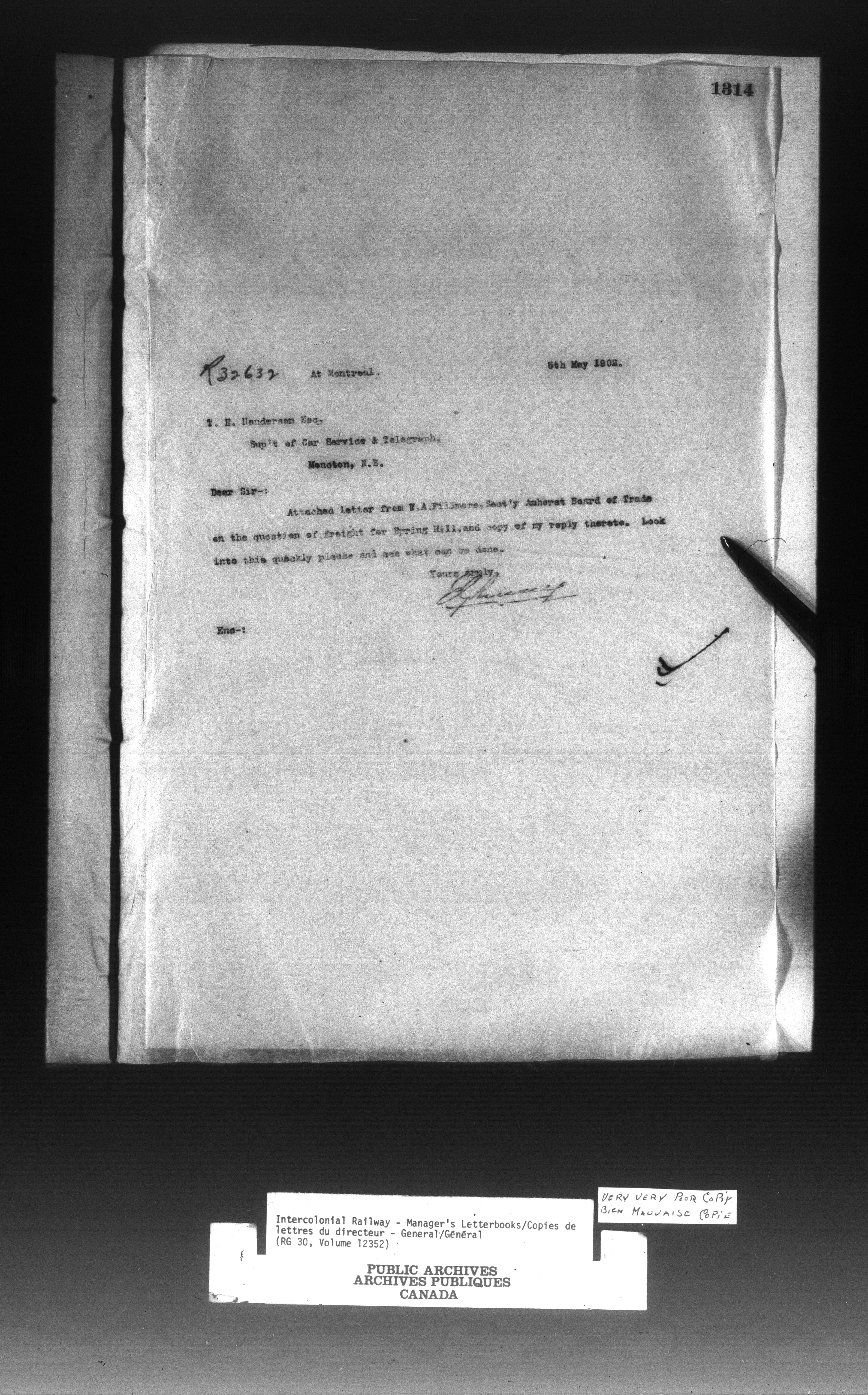 Canadian Government Railways : Office of the Manager, Outward correspondence : C-13048