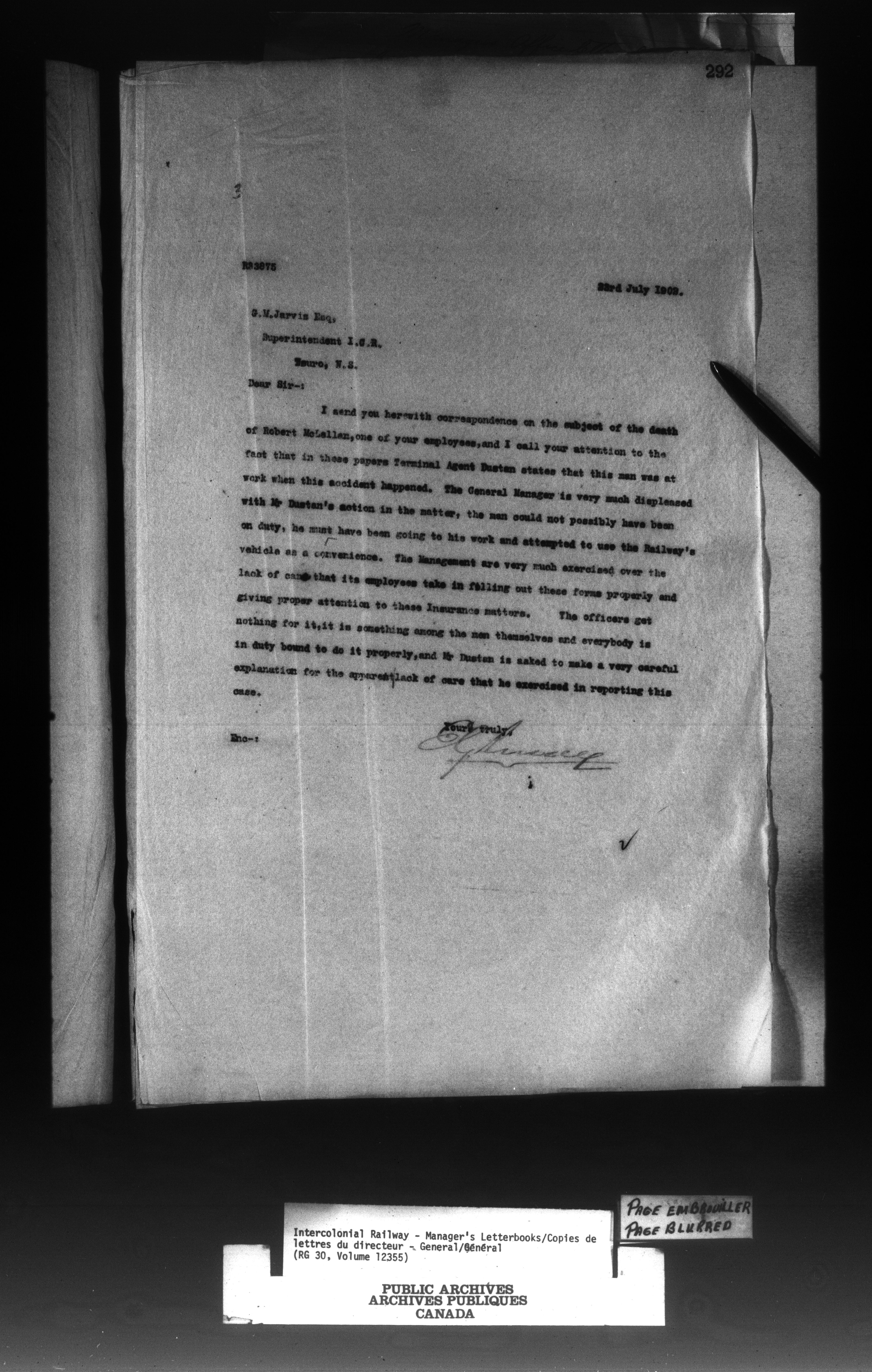 Canadian Government Railways : Office of the General Superintendent - 13050