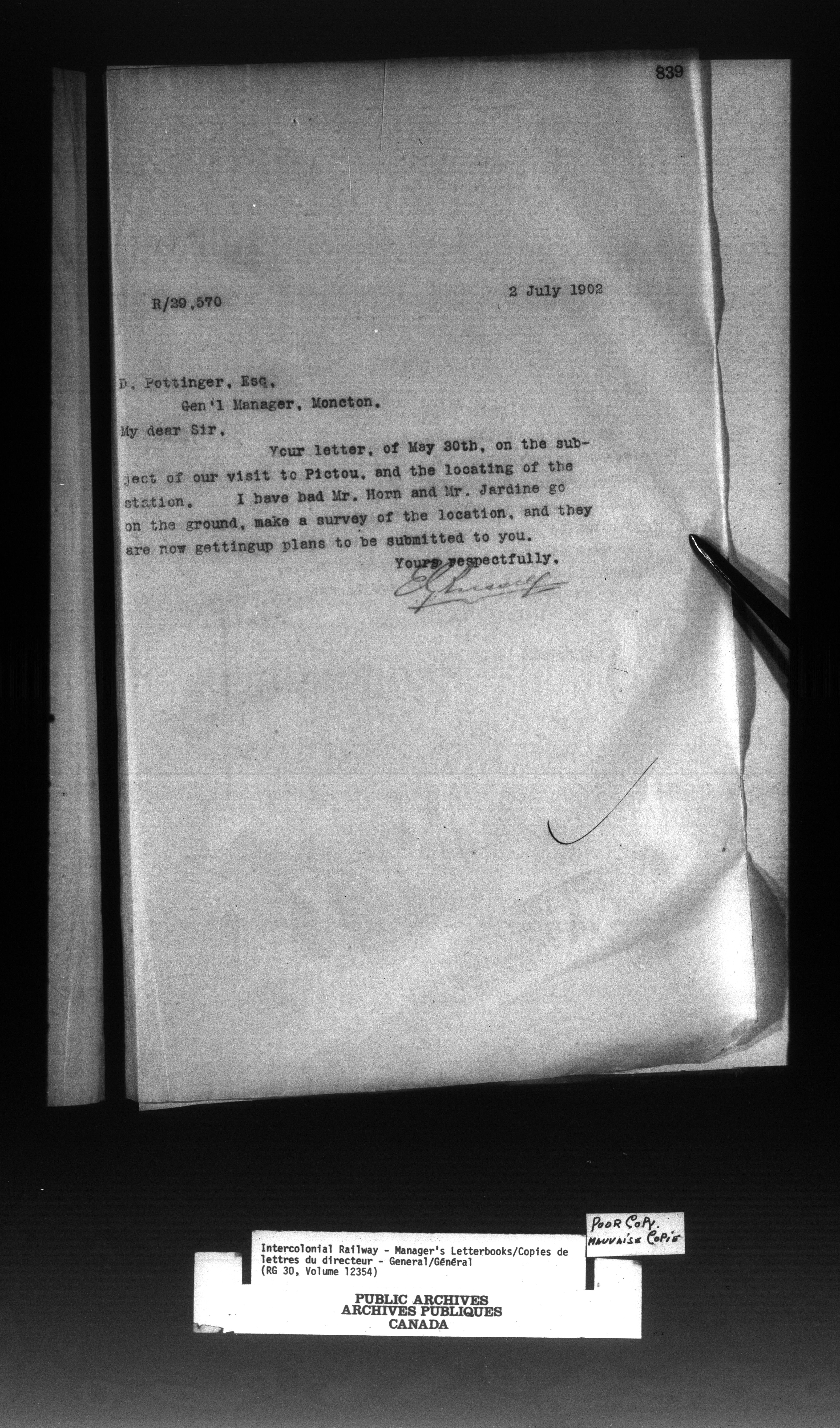 Canadian Government Railways : Office of the General Superintendent - 13050