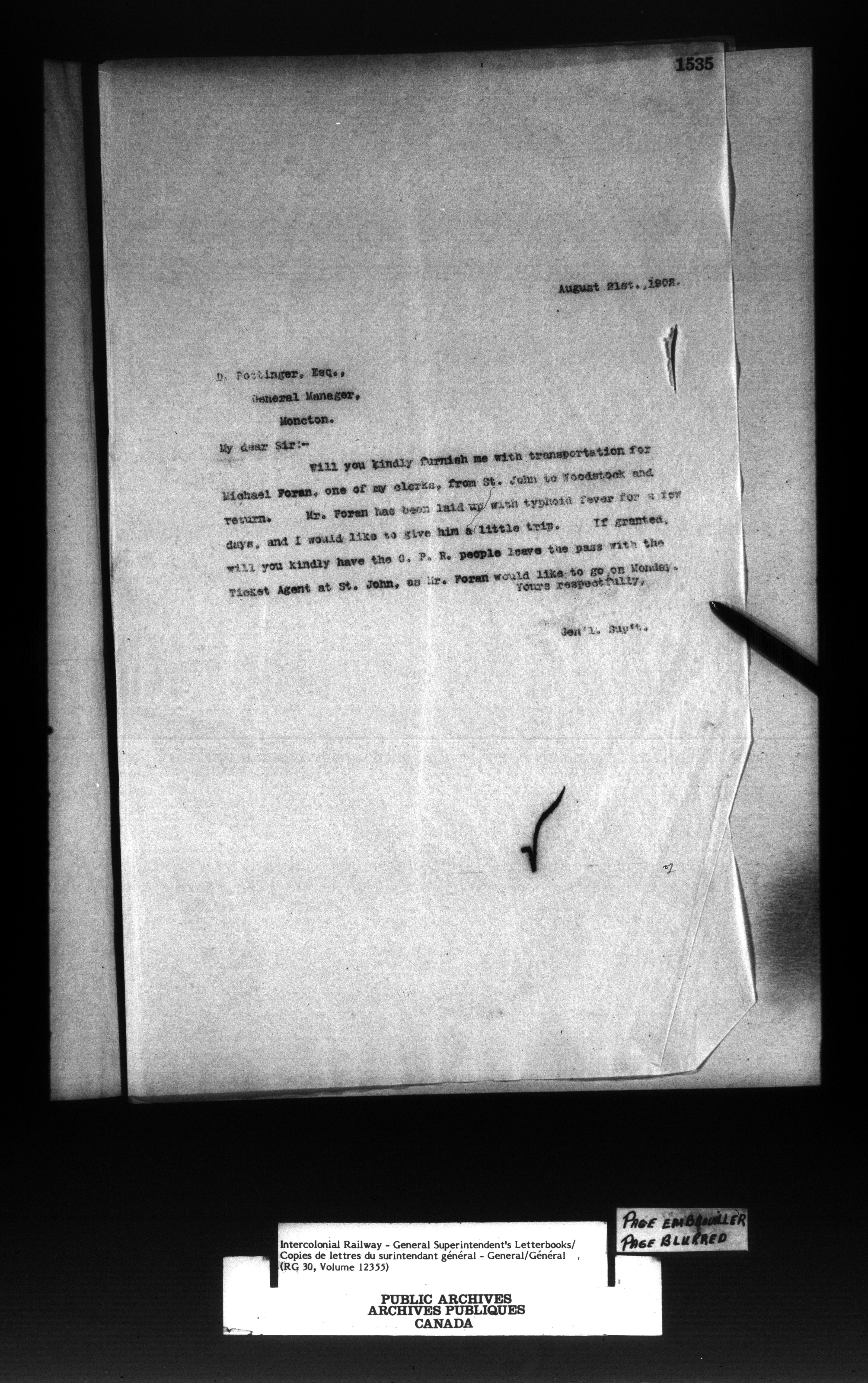 Canadian Government Railways : Office of the General Superintendent - 13051
