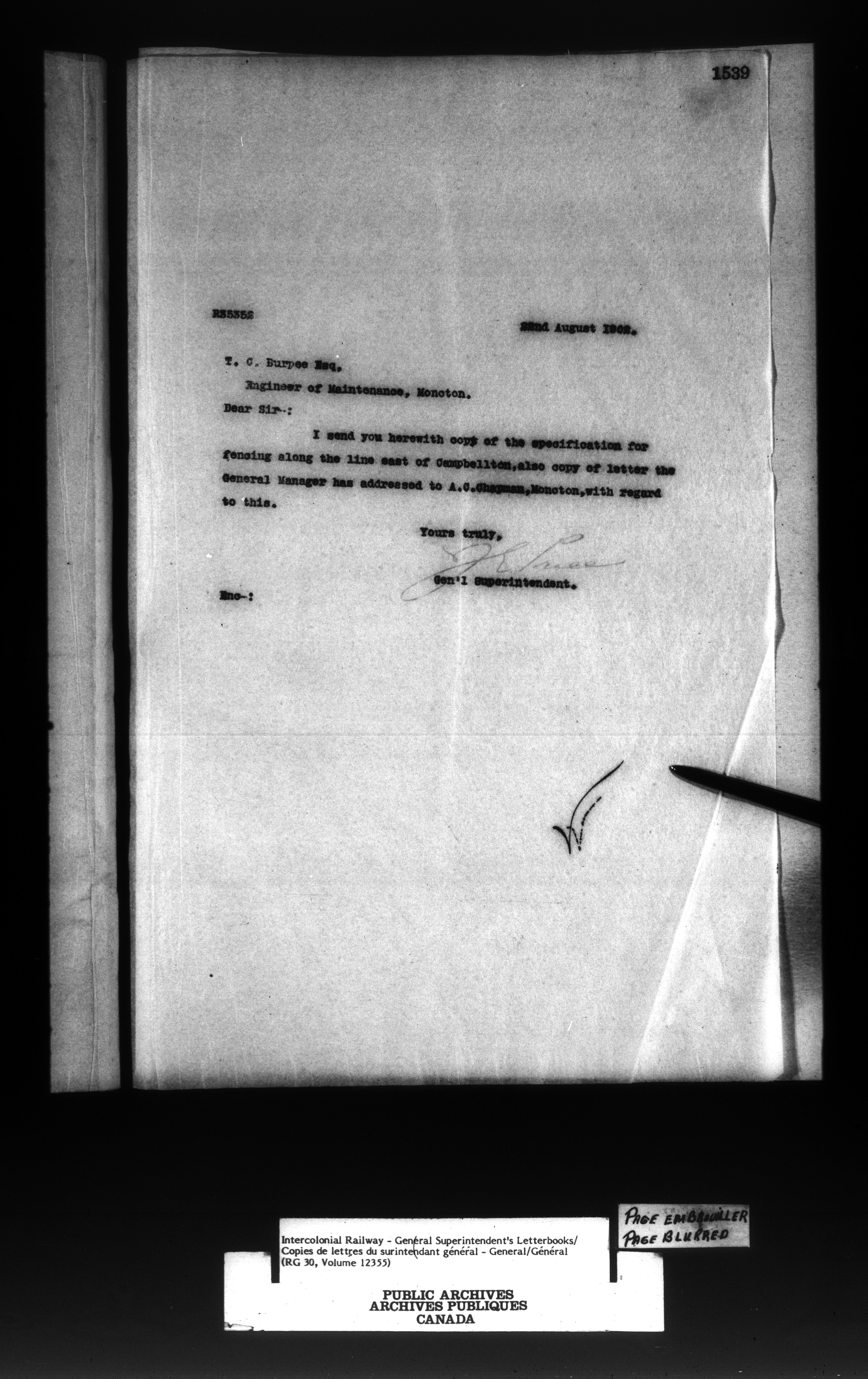 Canadian Government Railways : Office of the General Superintendent - 13051