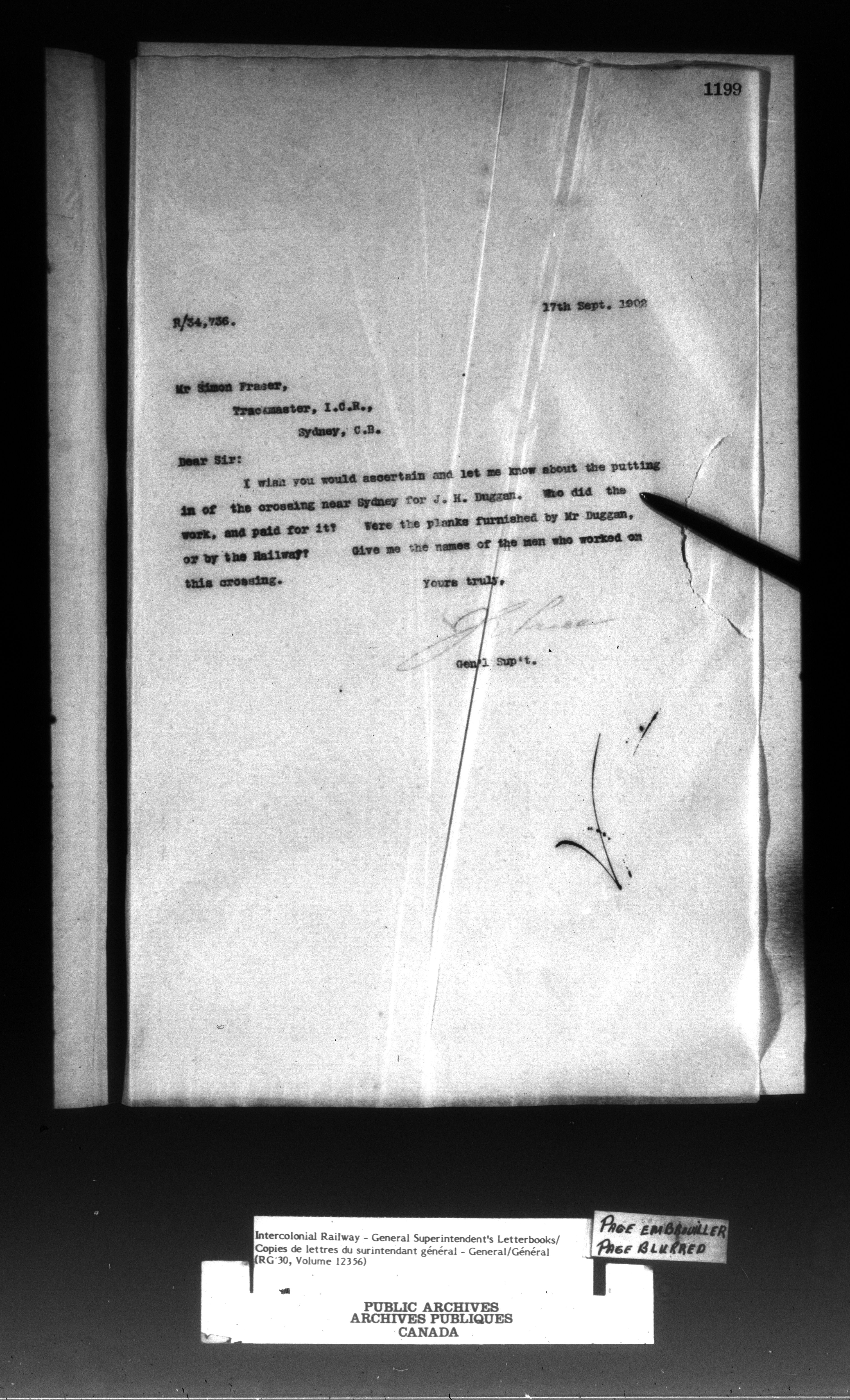 Canadian Government Railways : Office of the General Superintendent - 13052