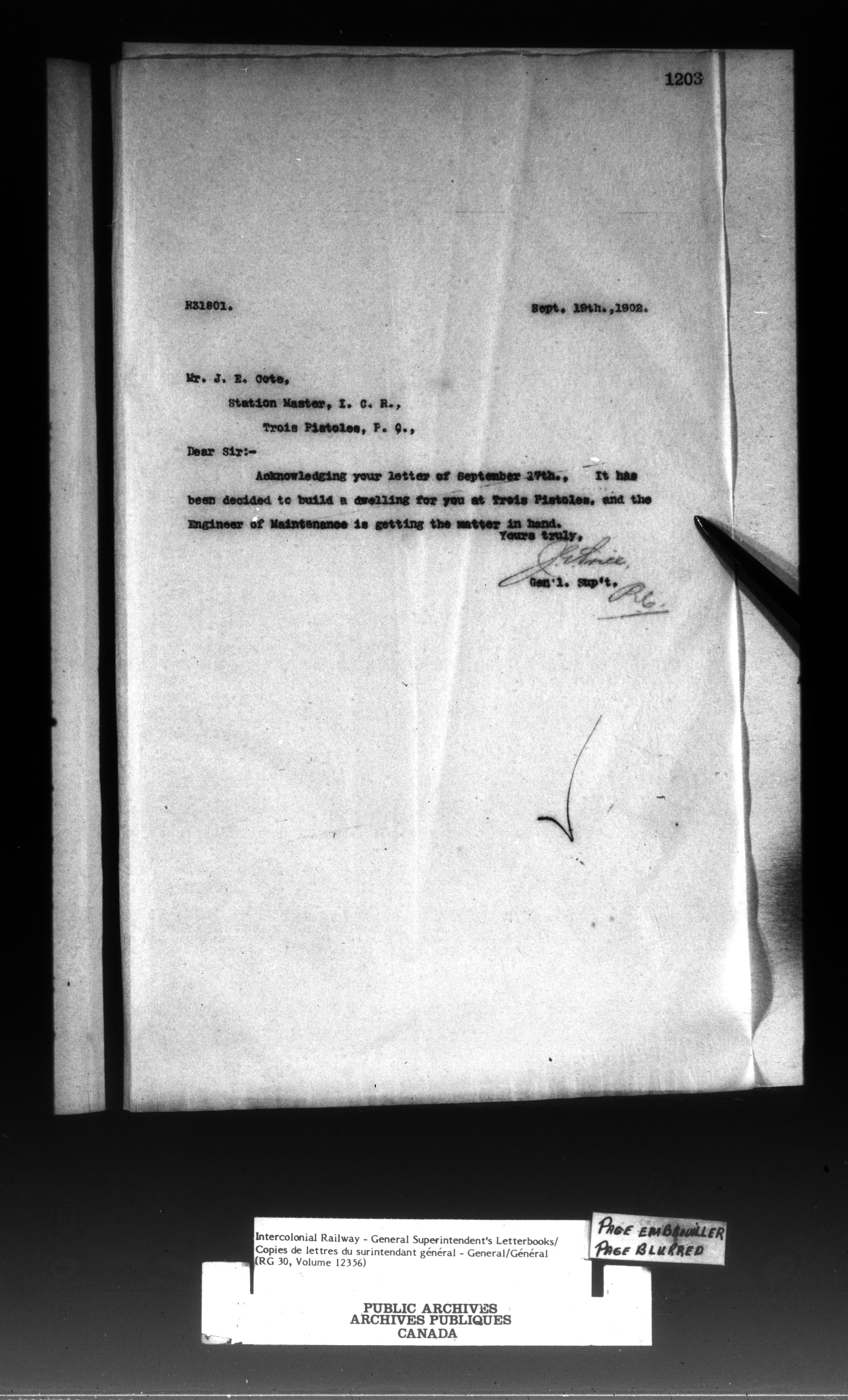 Canadian Government Railways : Office of the General Superintendent - 13052