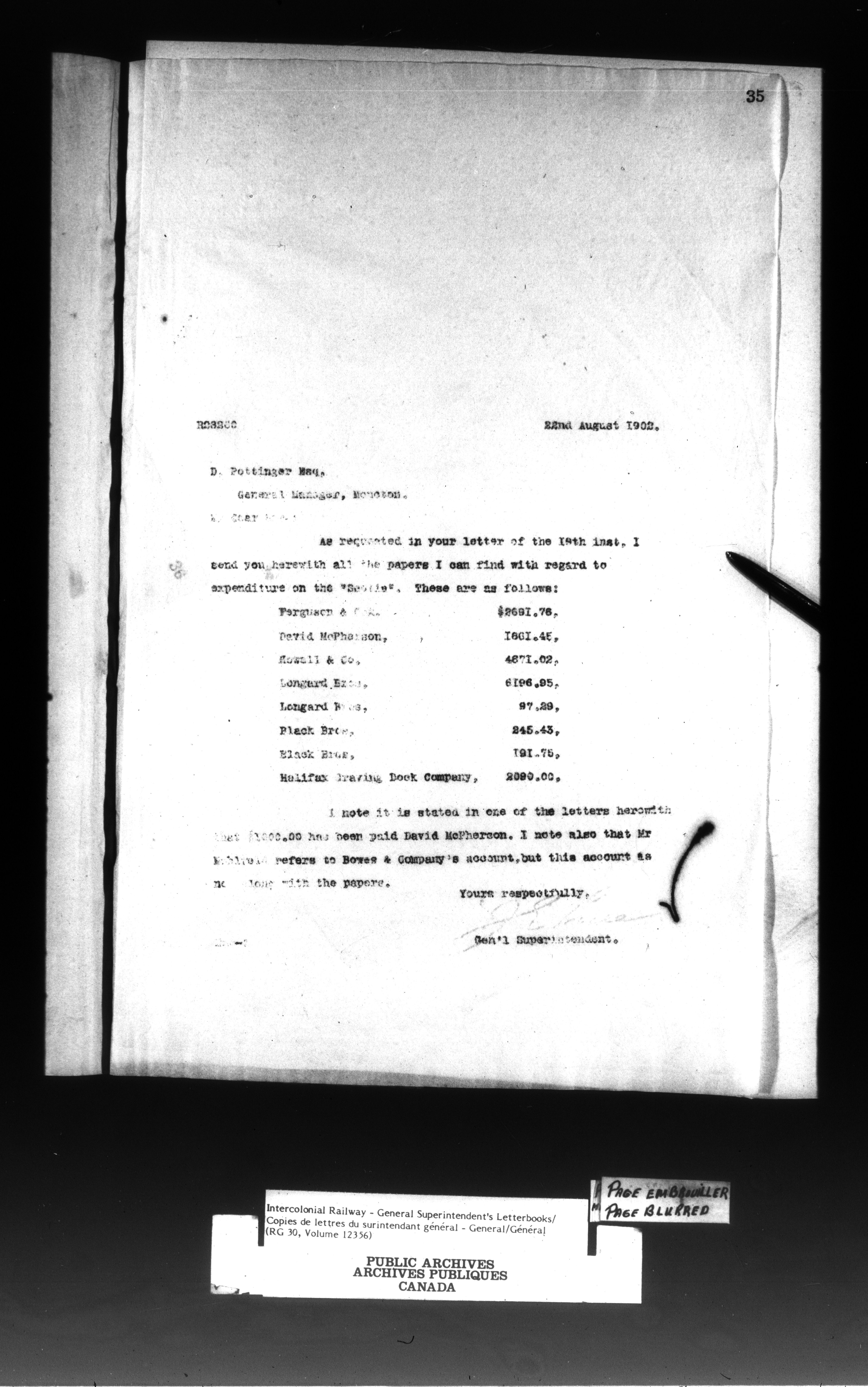 Canadian Government Railways : Office of the General Superintendent - 13052