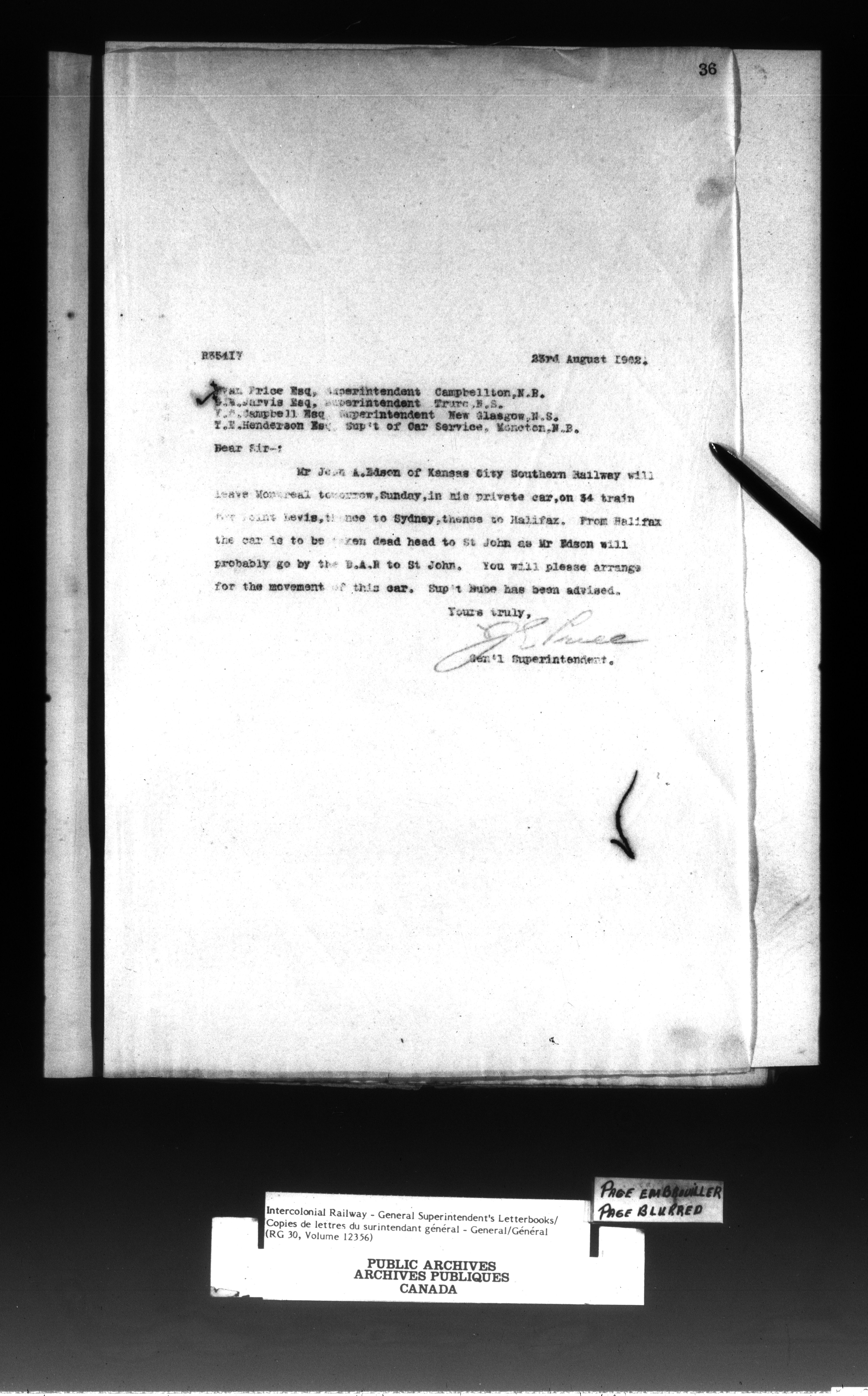 Canadian Government Railways : Office of the General Superintendent - 13052
