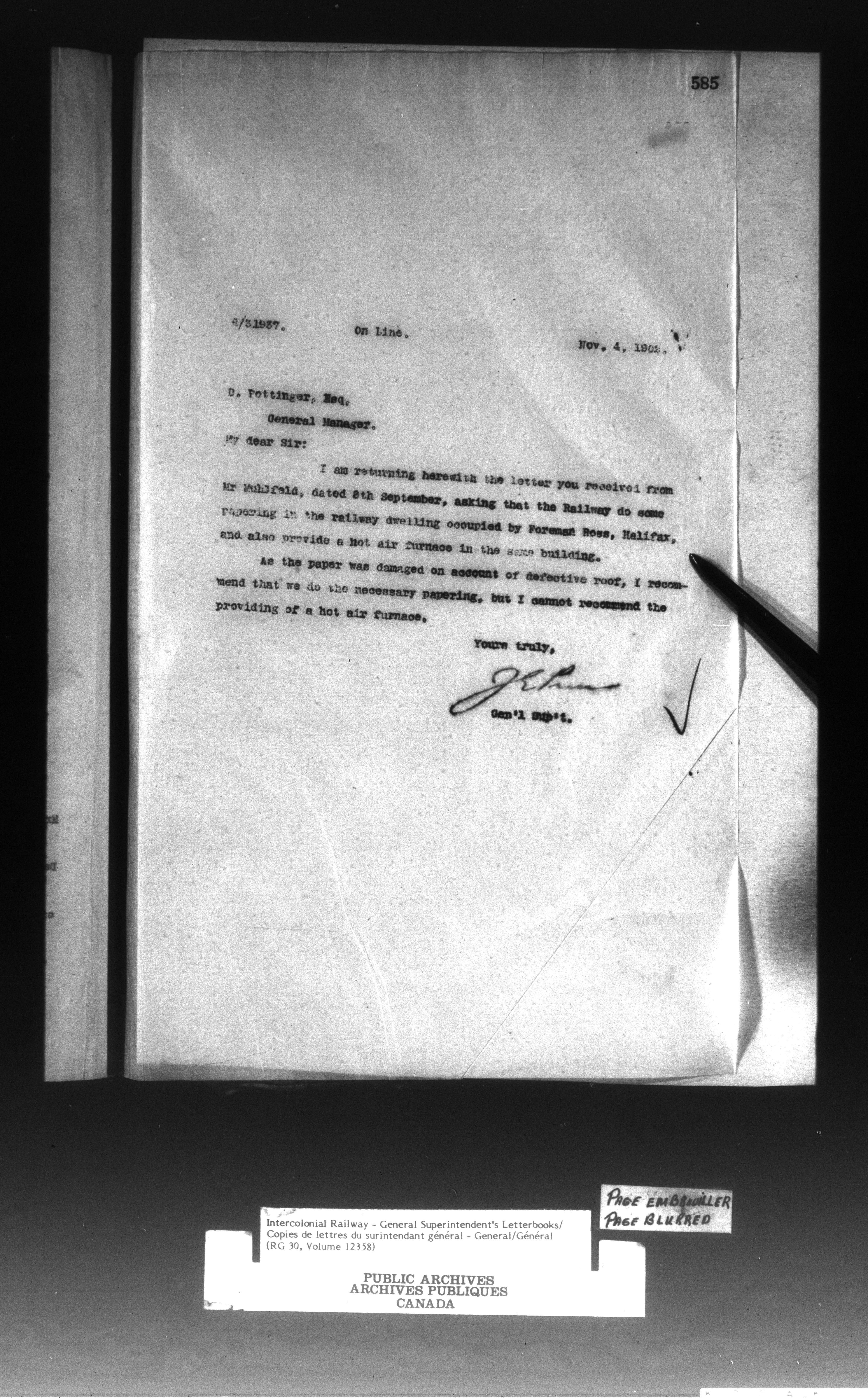 Canadian Government Railways : Office of the General Superintendent correspondence : C-13055