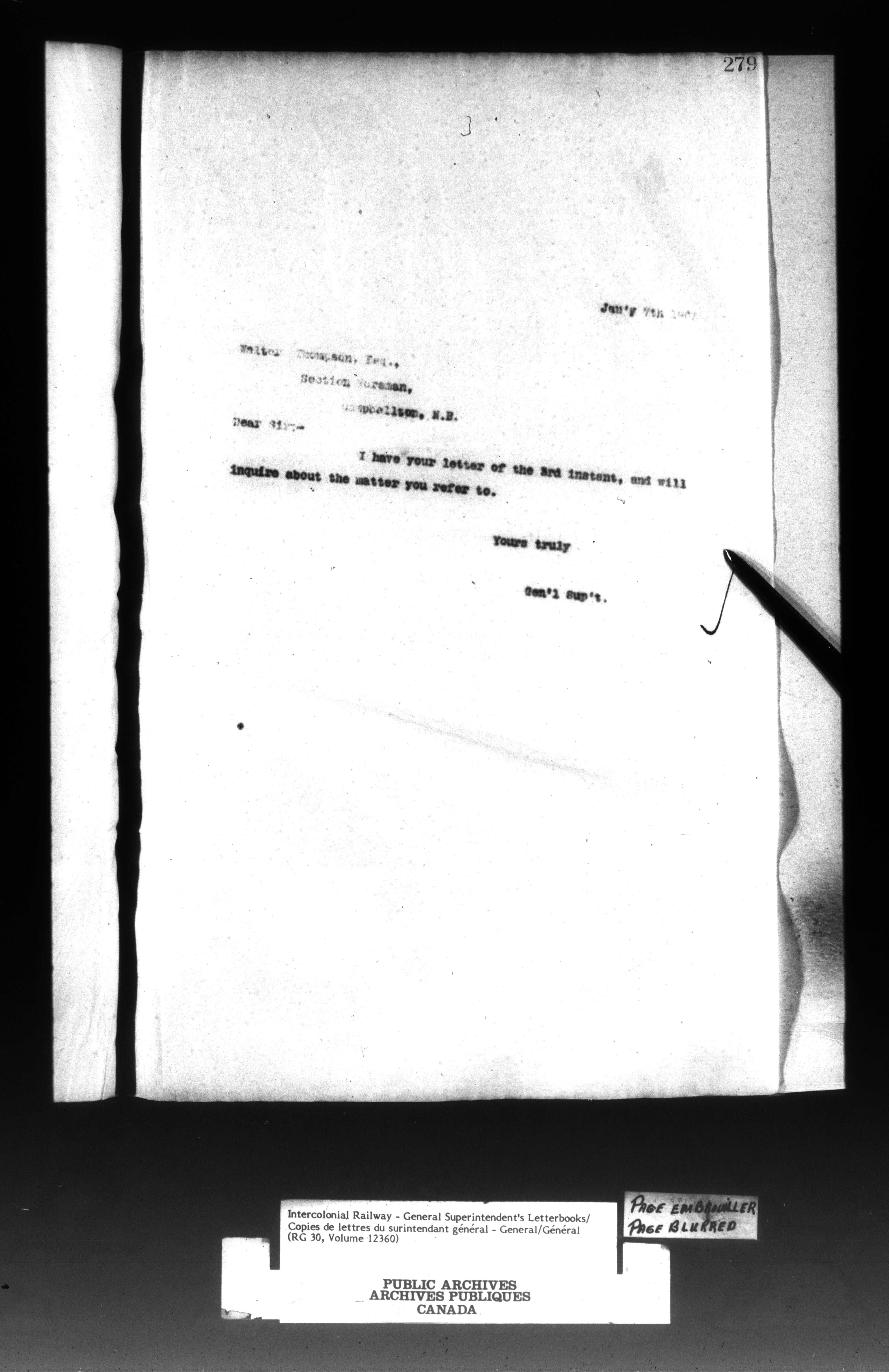 Canadian Government Railways : Office of the General Superintendent - 13056