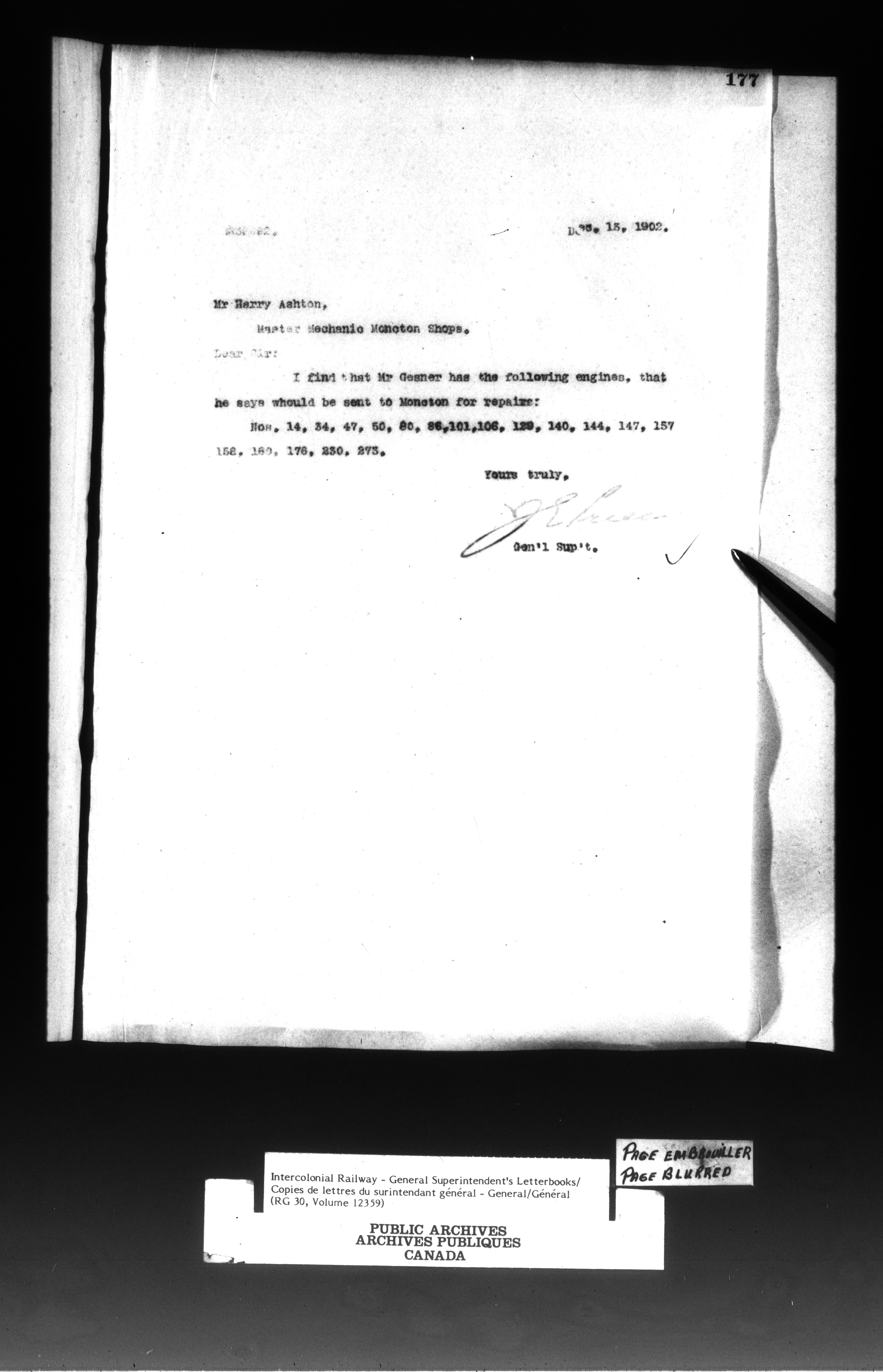 Canadian Government Railways : Office of the General Superintendent - 13056
