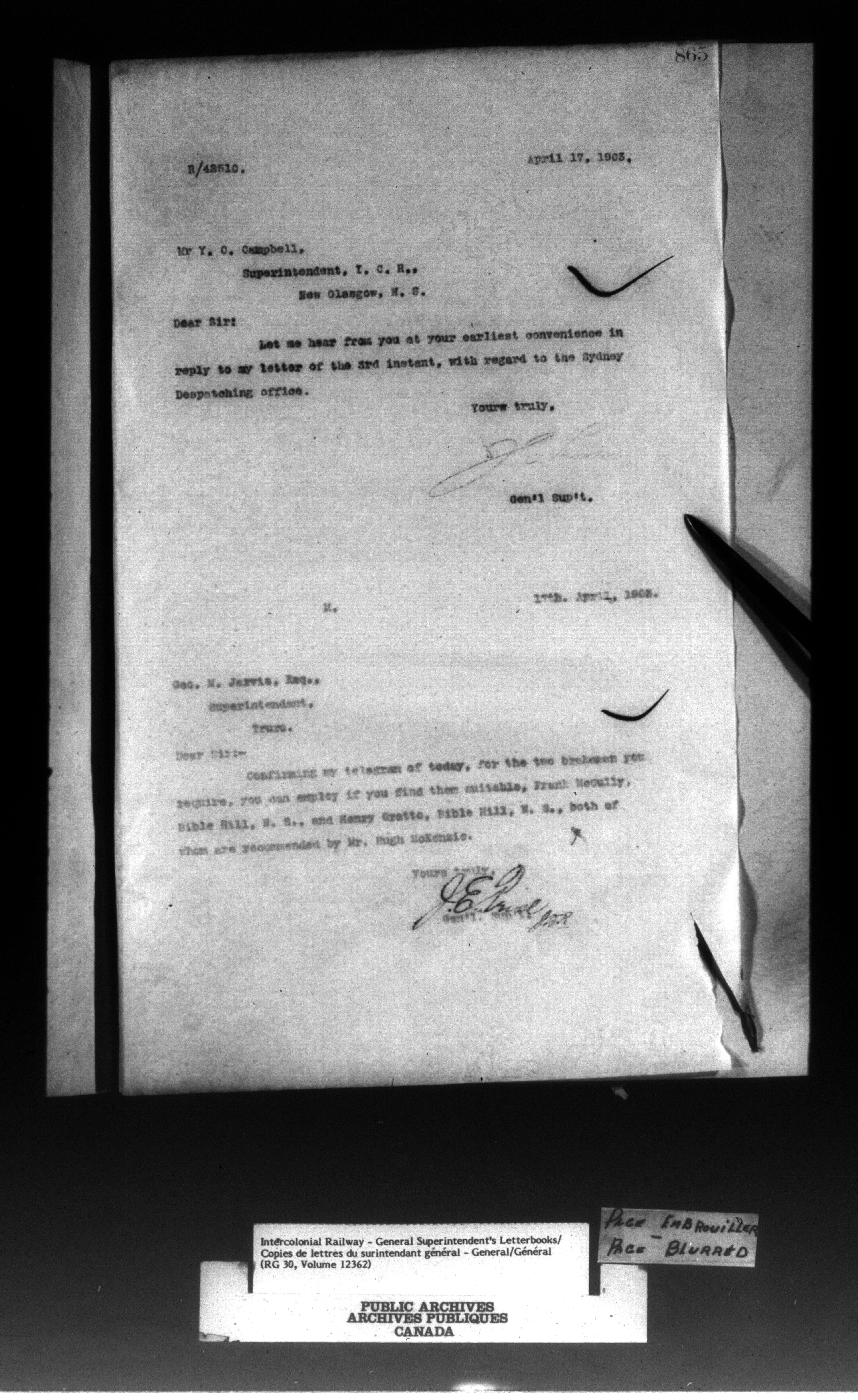 Canadian Government Railways : Office of the General Superintendent - 13059