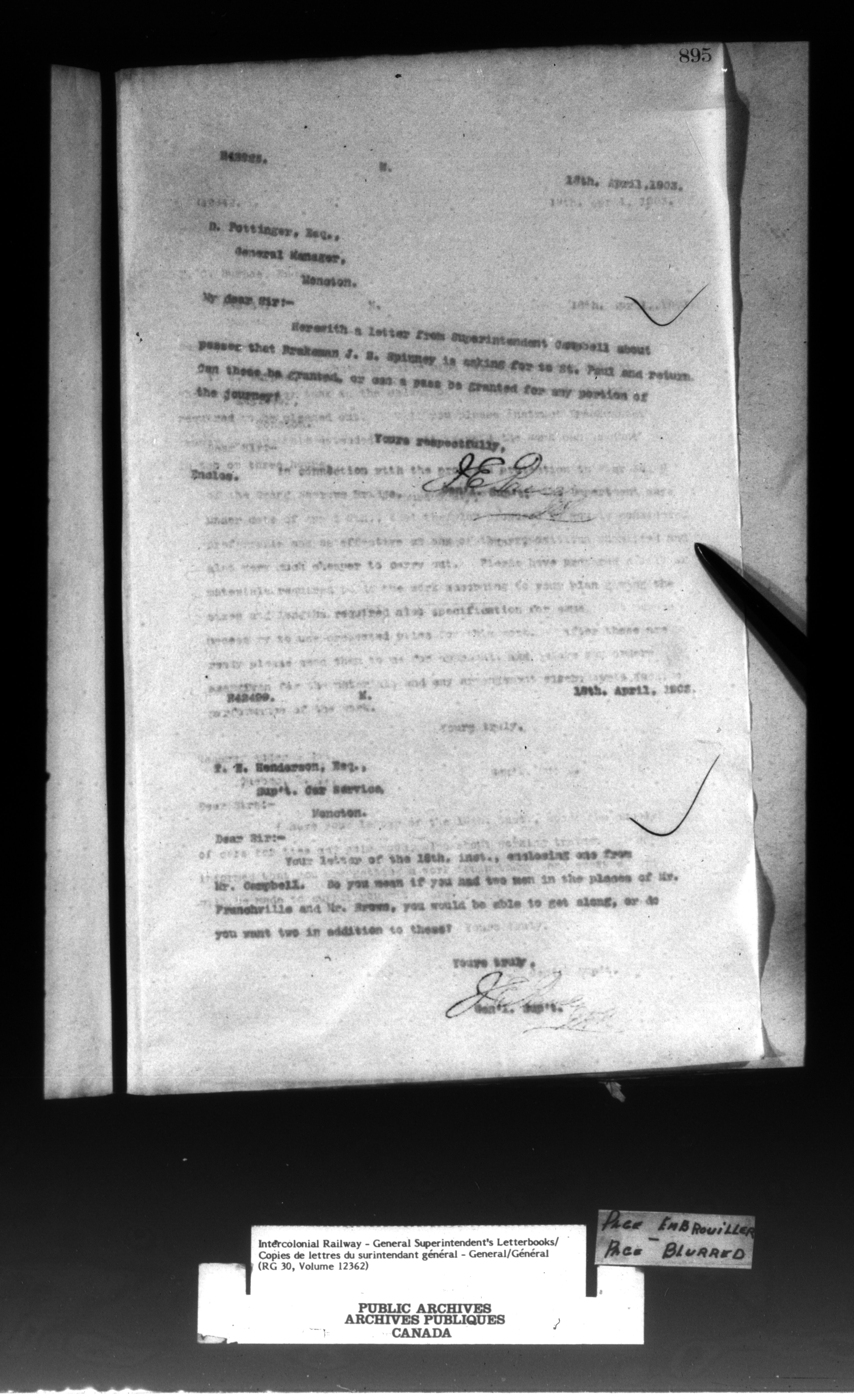 Canadian Government Railways : Office of the General Superintendent - 13059