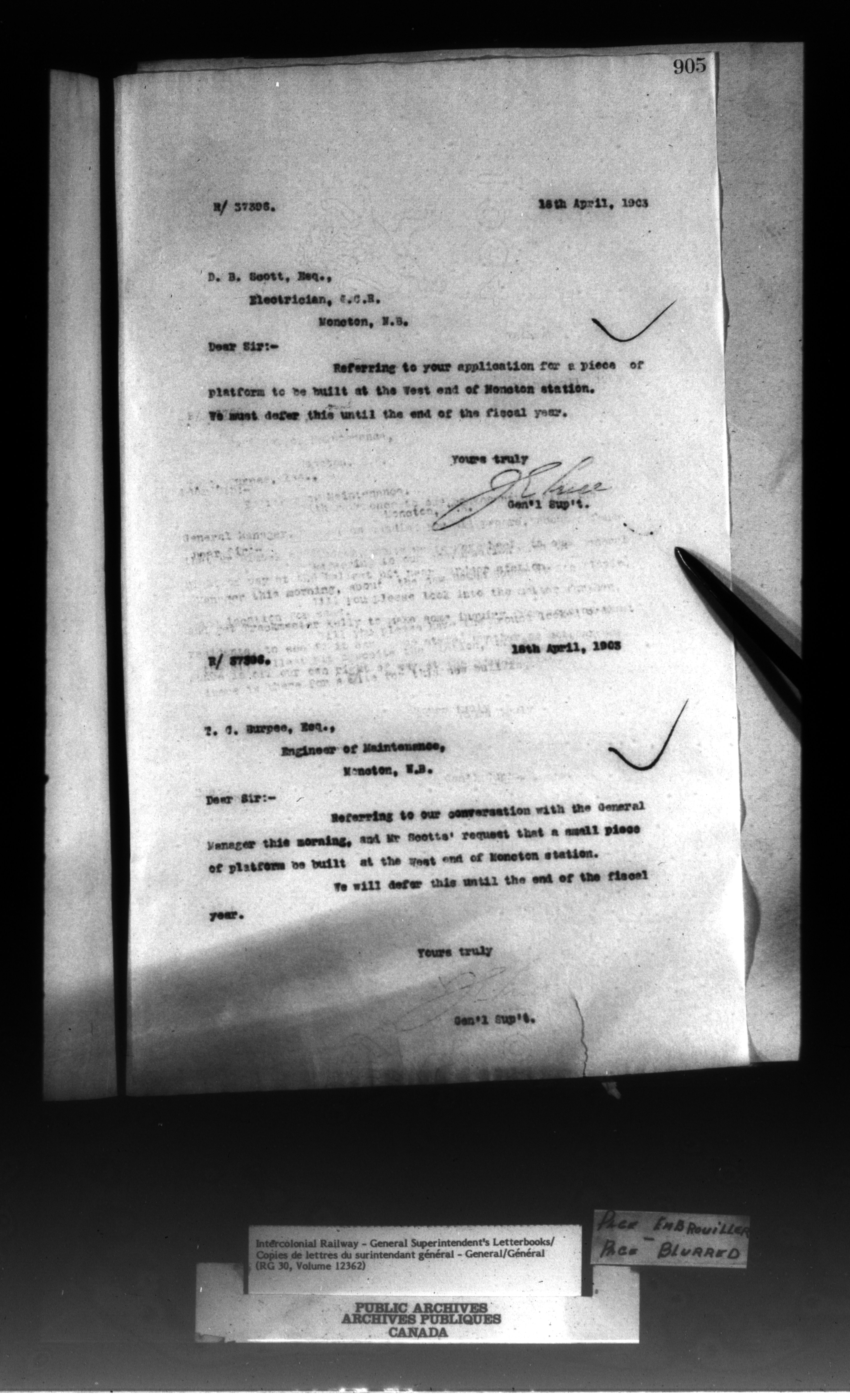 Canadian Government Railways : Office of the General Superintendent - 13059