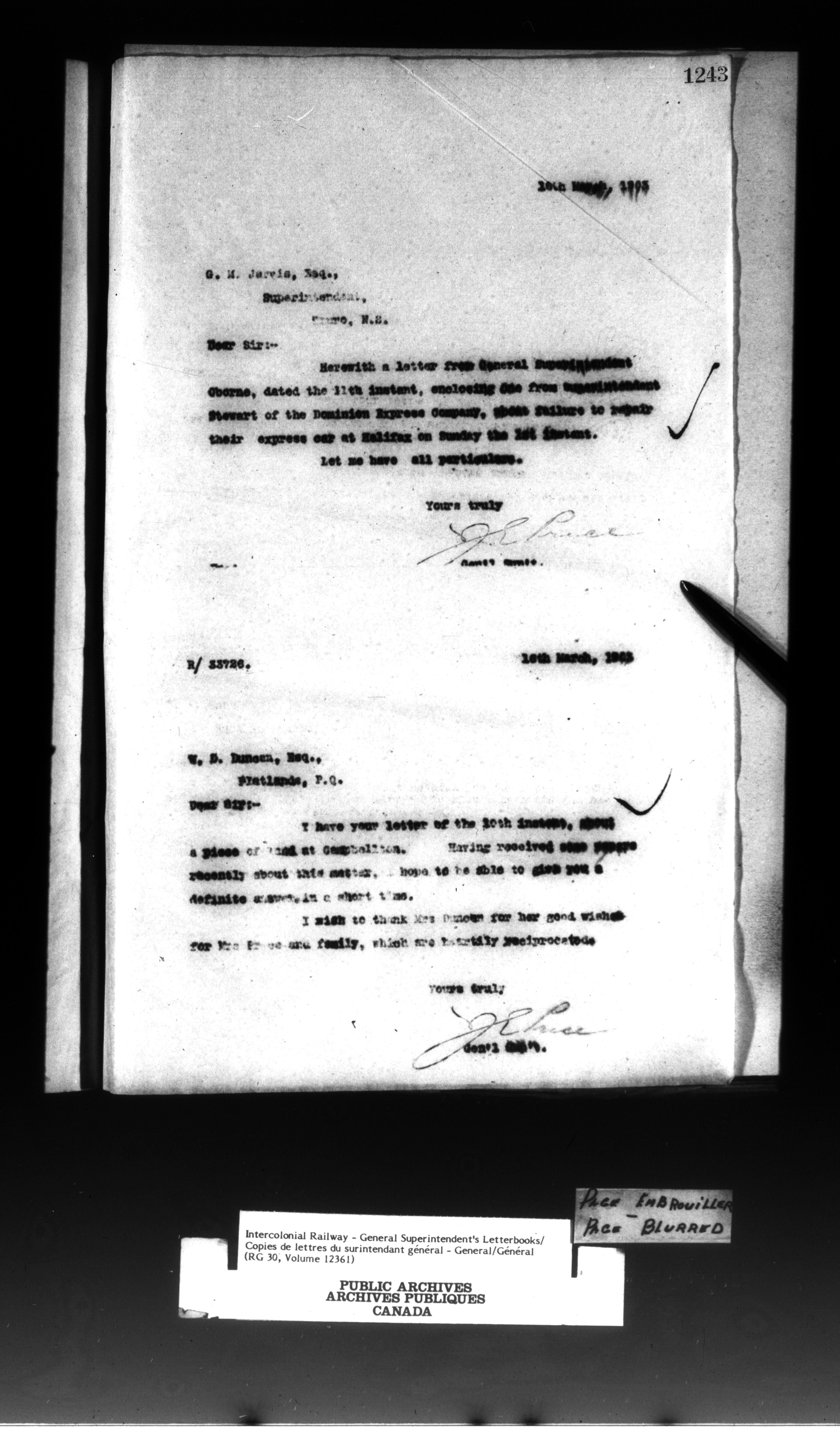Canadian Government Railways : Office of the General Superintendent - 13059