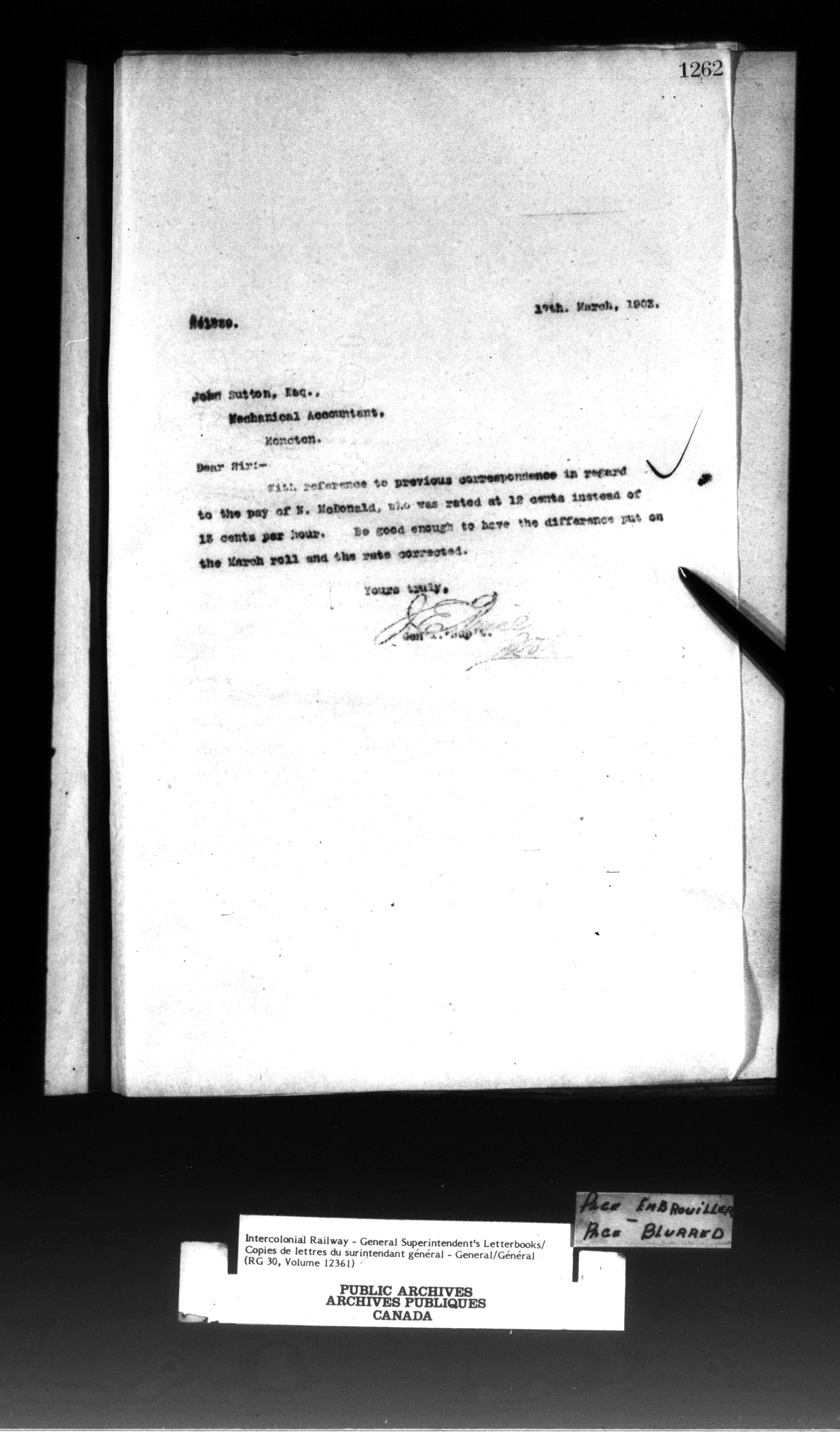 Canadian Government Railways : Office of the General Superintendent - 13059