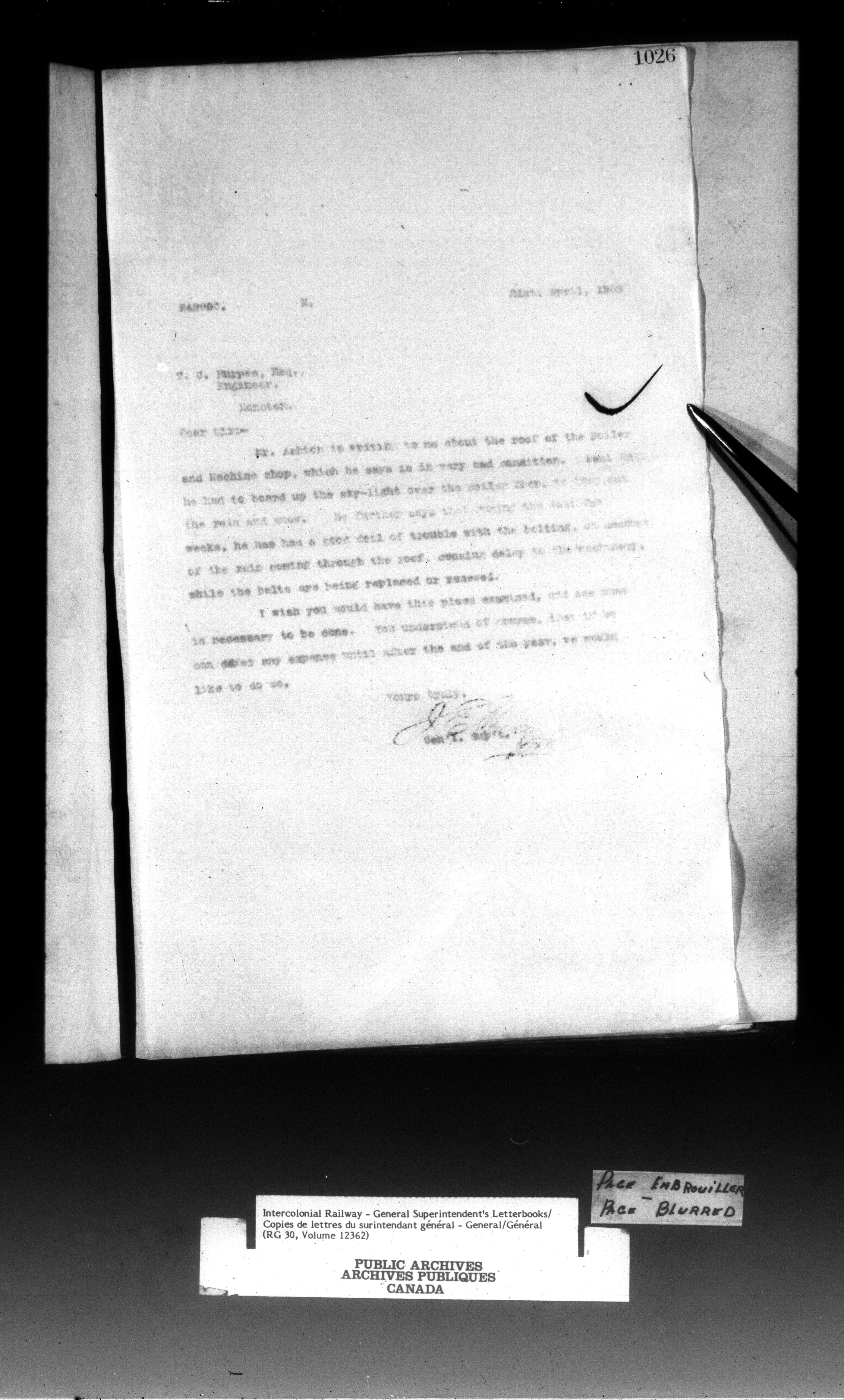 Canadian Government Railways : Office of the General Superintendent correspondence : C-13060