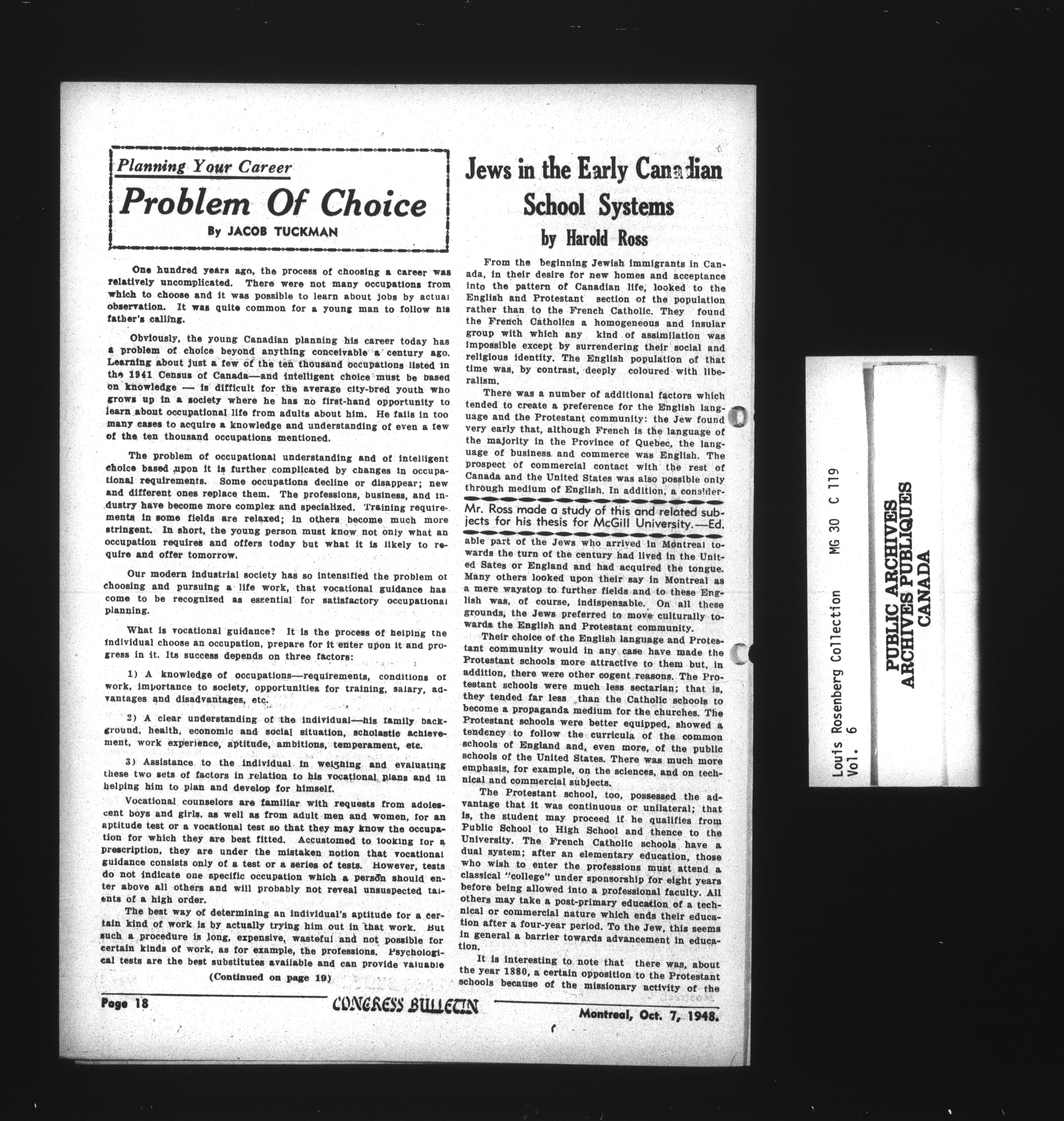Louis Rosenberg fonds, Canadian Jewish Collection Miscellaneous - 13085