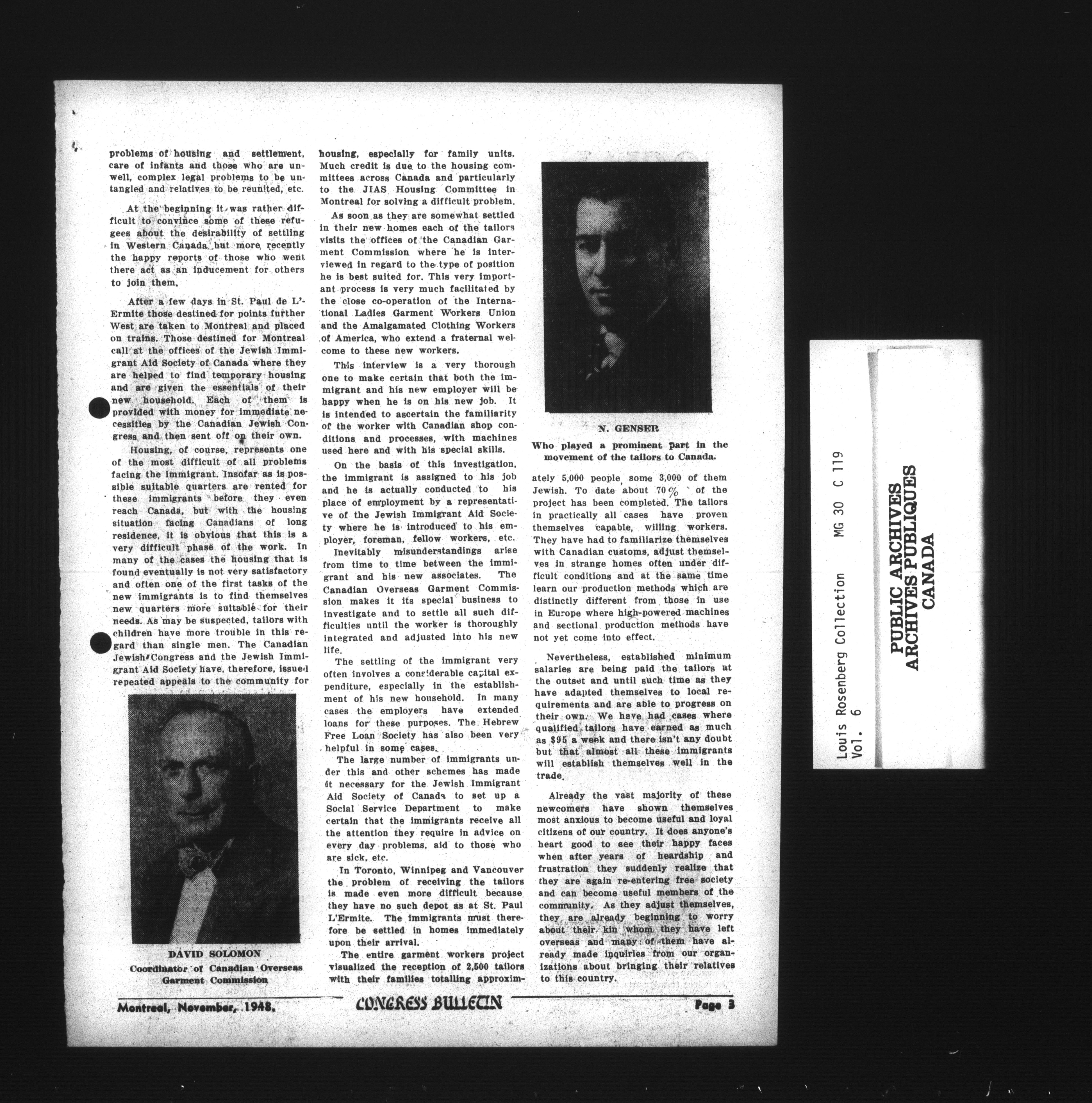 Louis Rosenberg fonds, Canadian Jewish Collection Miscellaneous - 13085