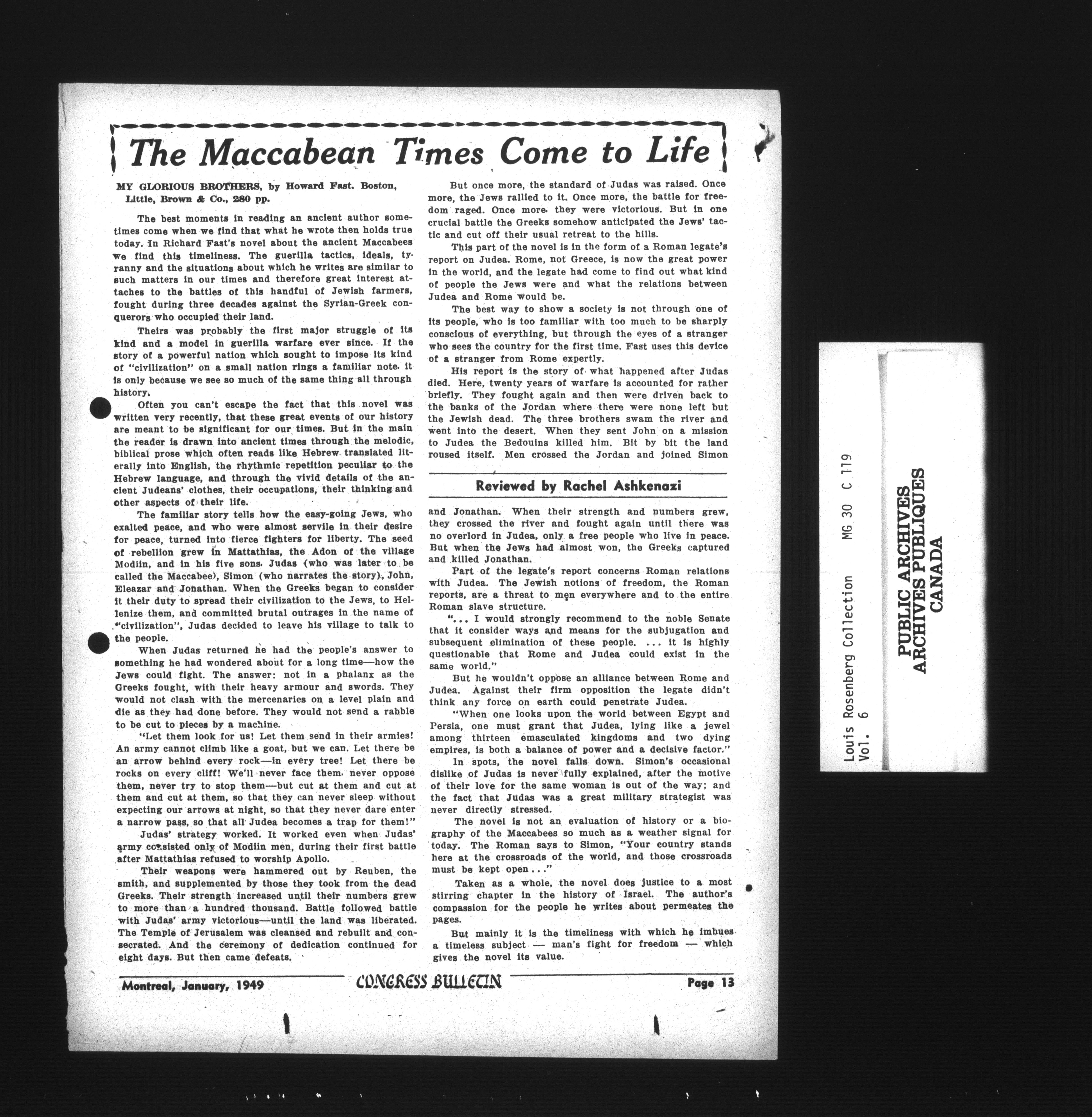 Louis Rosenberg fonds, Canadian Jewish Collection Miscellaneous - 13085