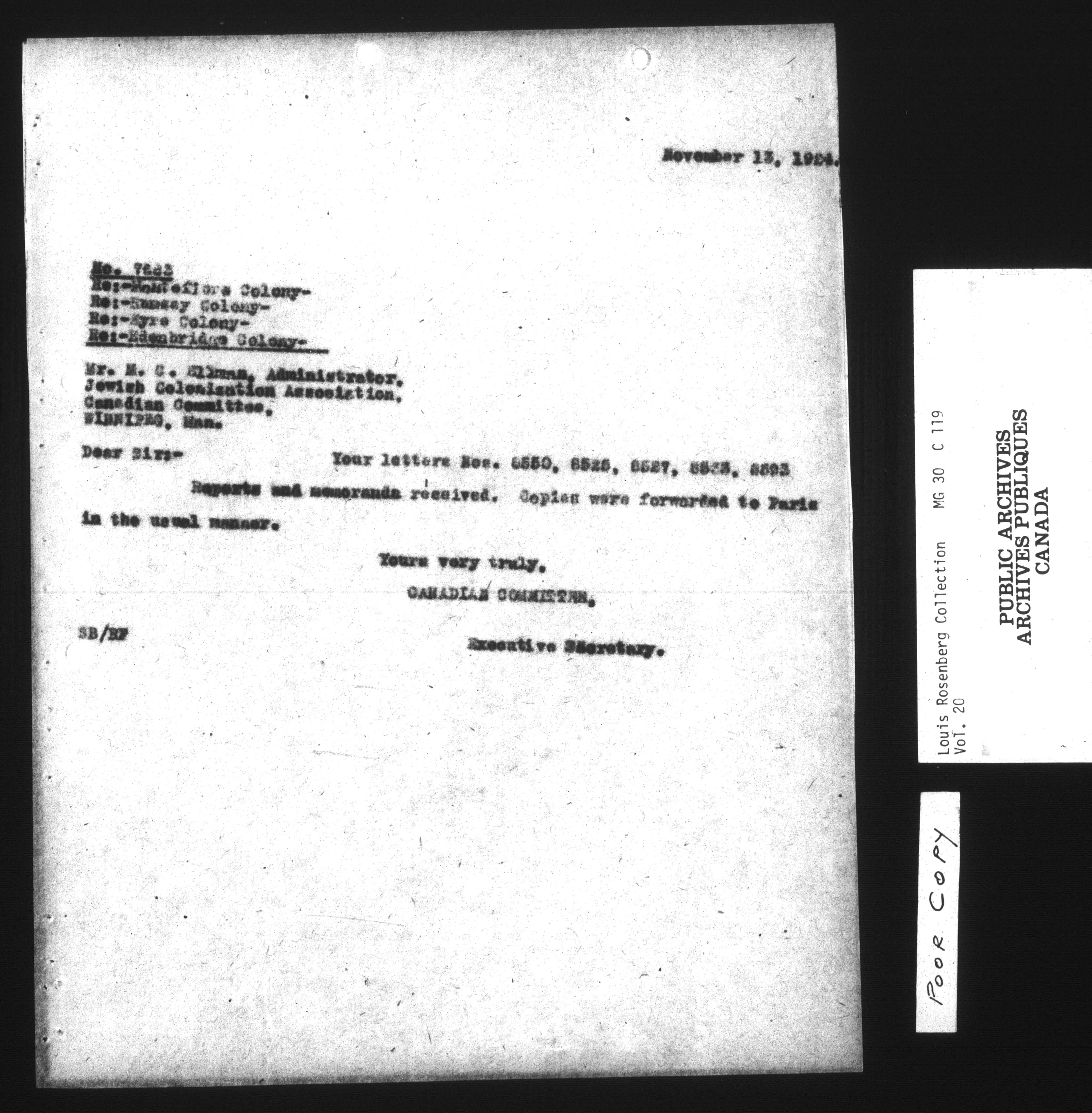 Louis Rosenberg Collection, Jewish Colonization Association - 13090