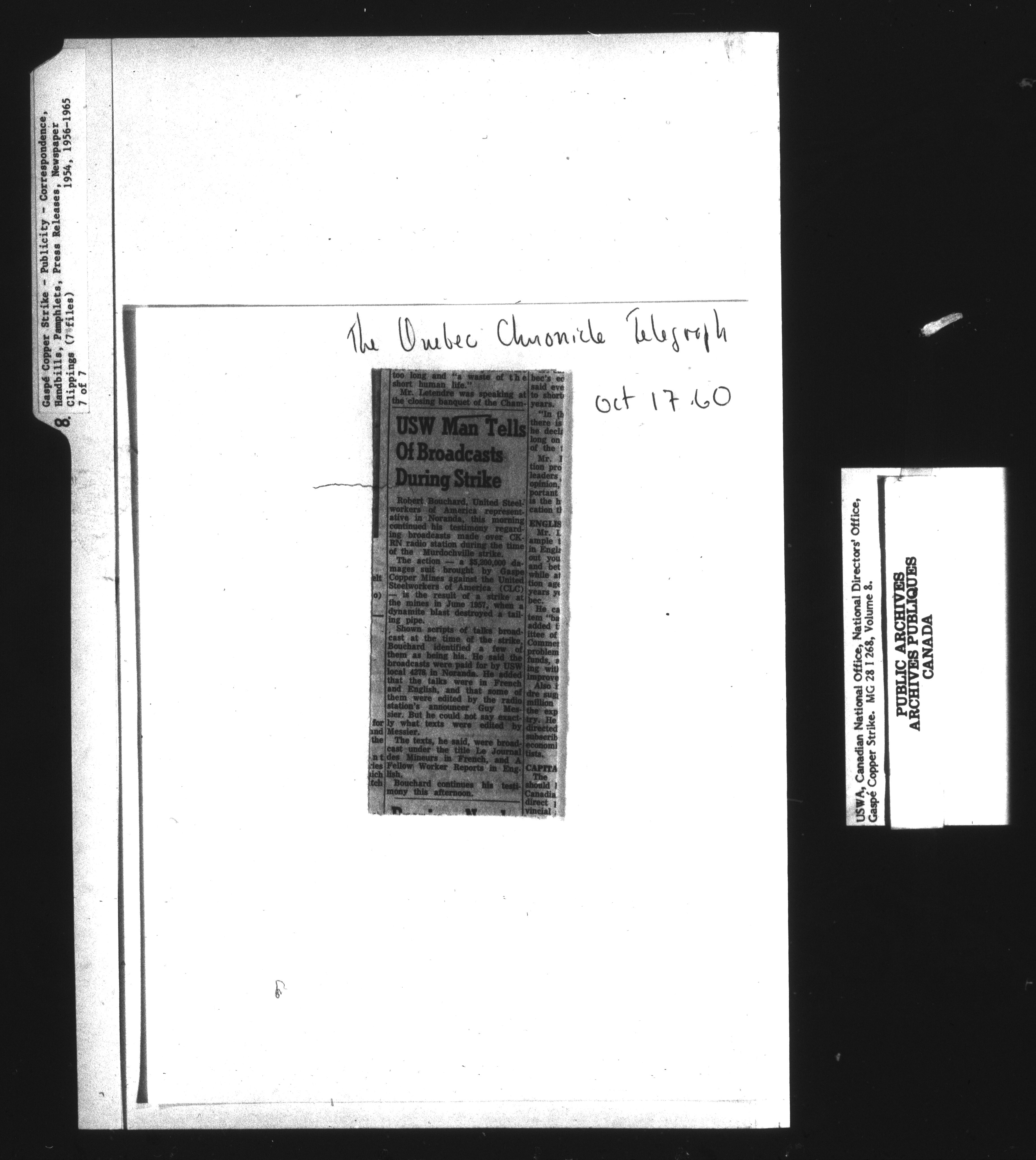 United Steelworkers of America : National Director's Office, Gaspé Copper Strike - 13108