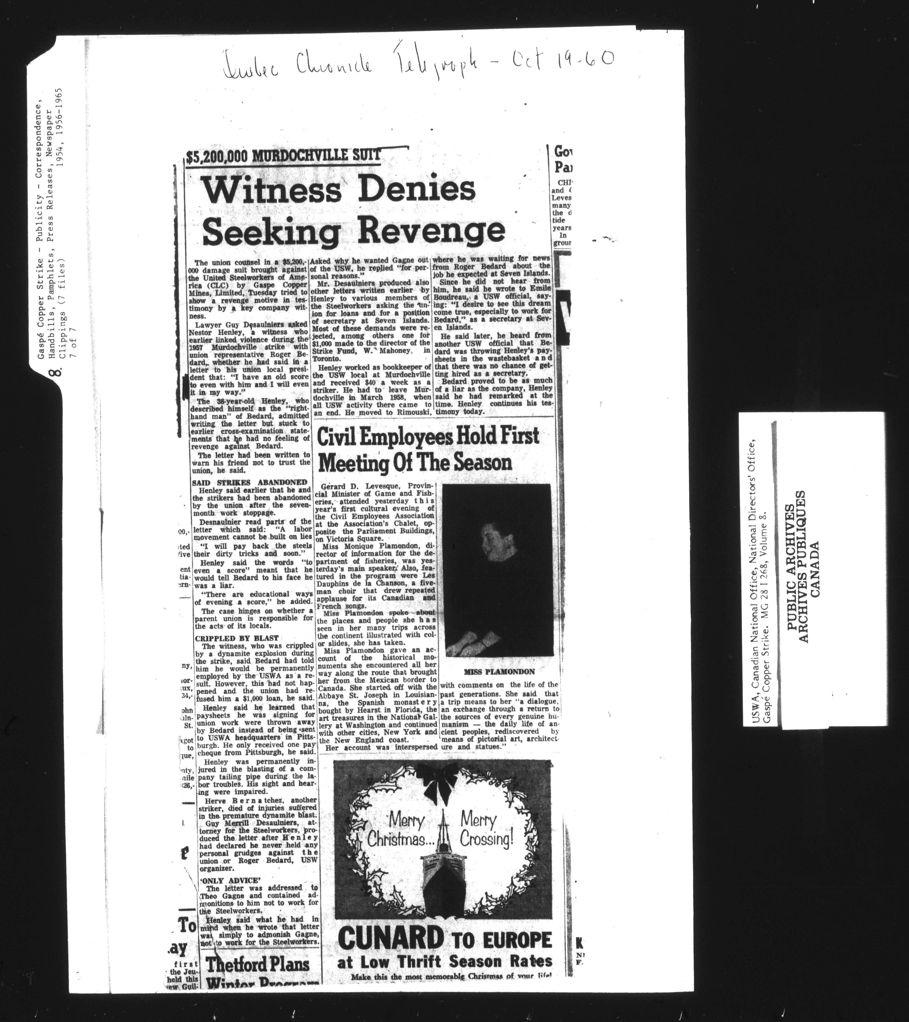 United Steelworkers of America : National Director's Office, Gaspé Copper Strike - 13108