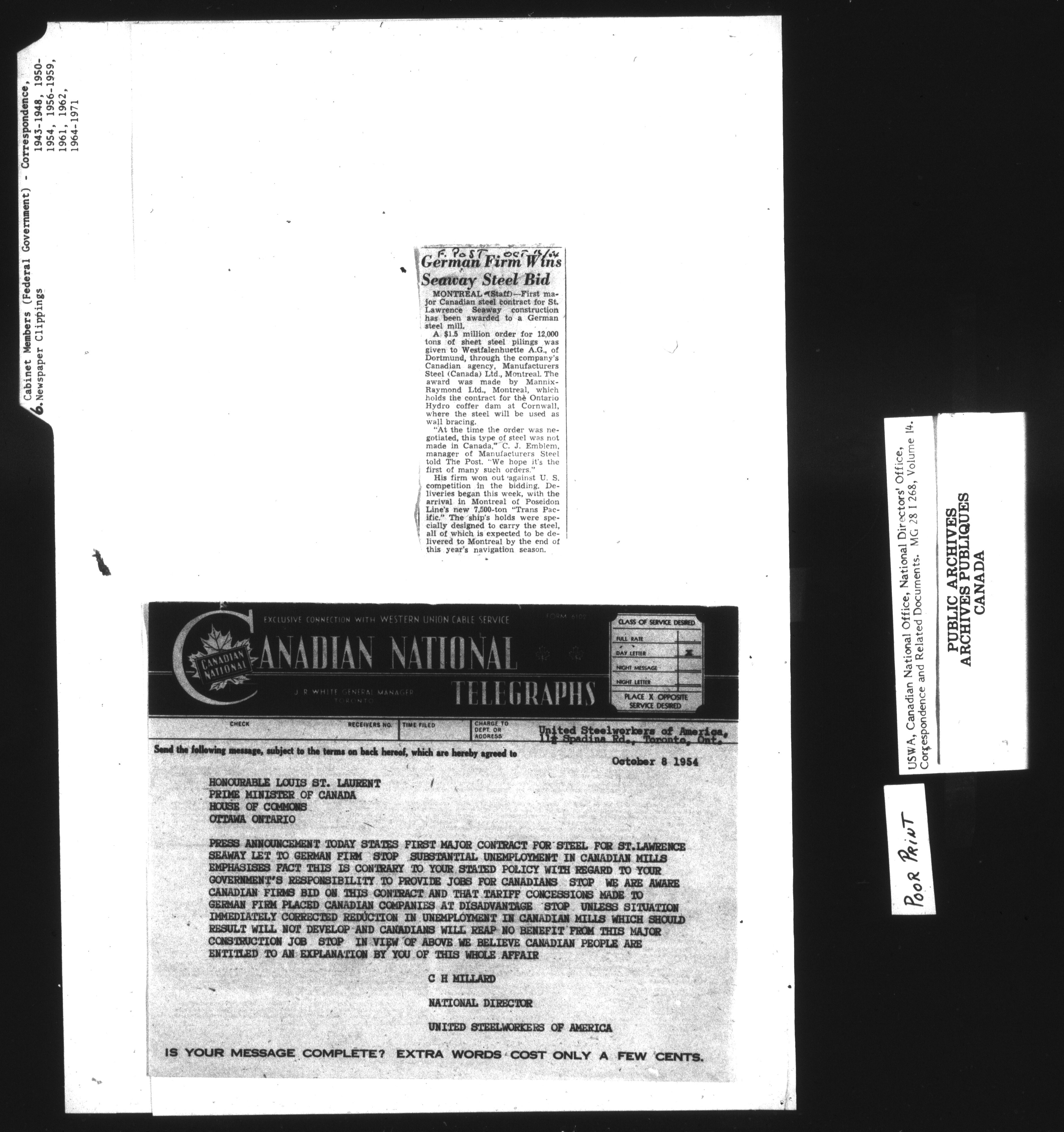 United Steelworkers of America : National Director's Office, Correspondence and related documents - 13109