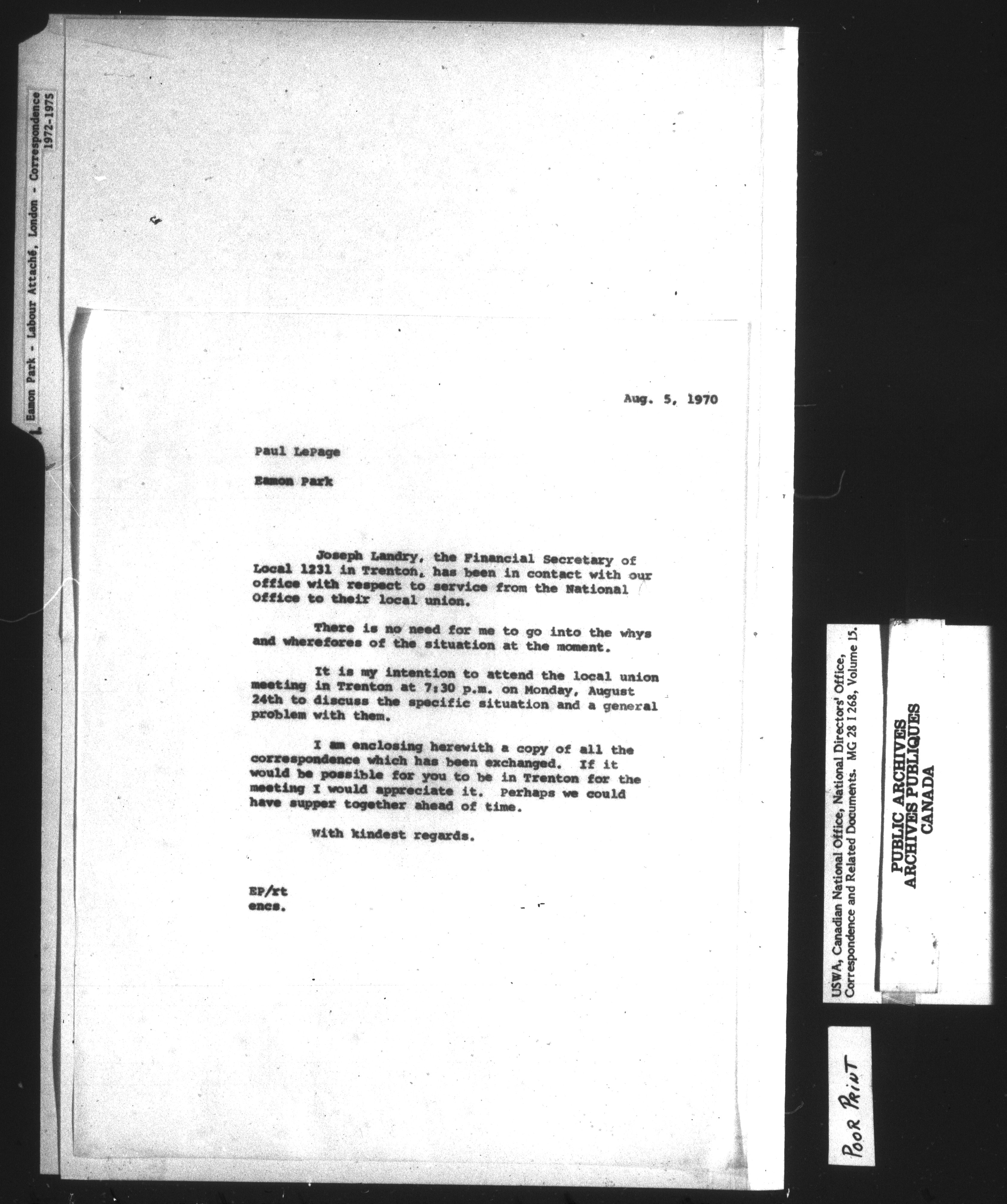 United Steelworkers of America : National Director's Office, Correspondence and related documents - 13110