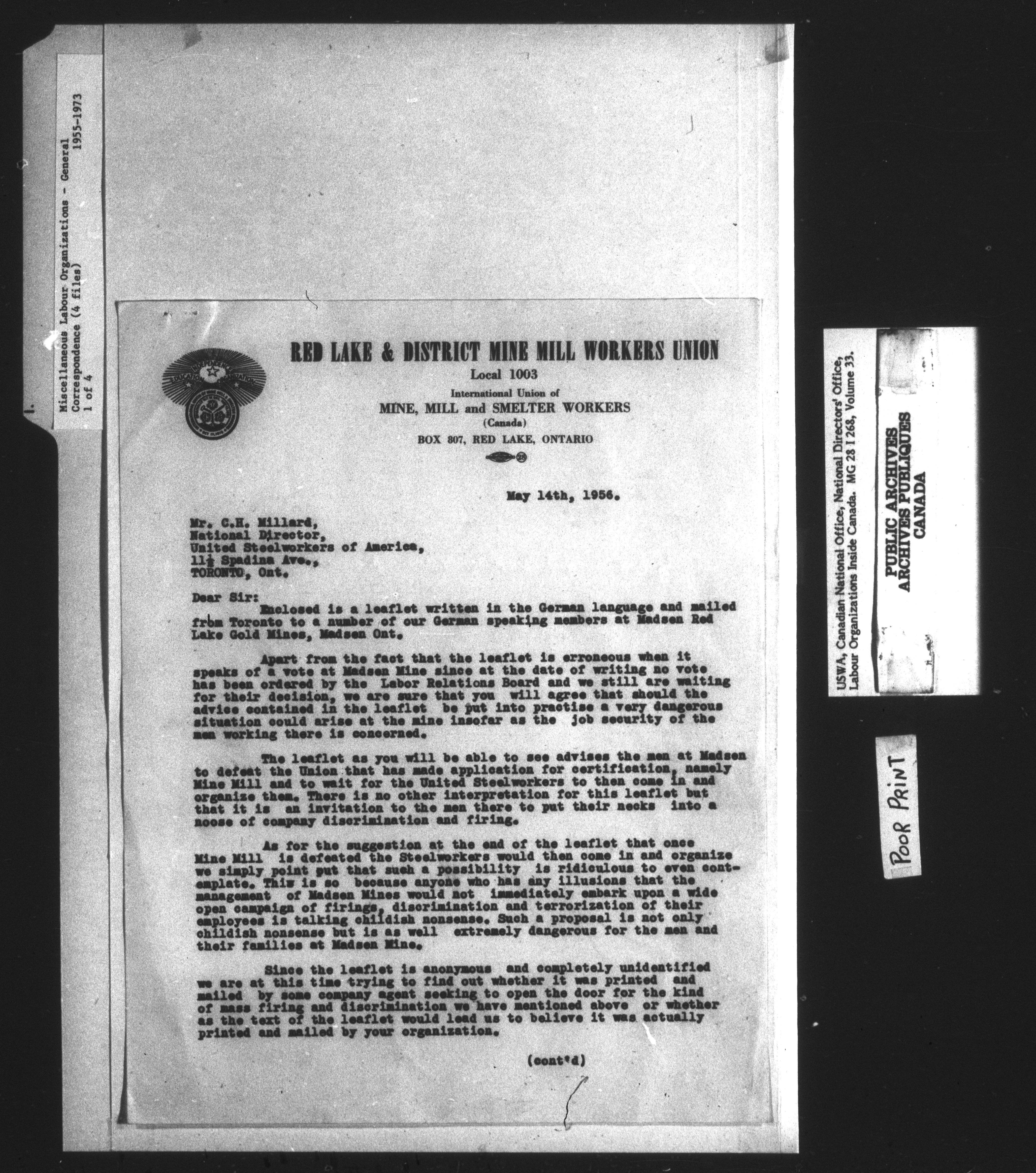 United Steelworkers of America : National Director's Office, Labour Organizations inside Canada - 13128