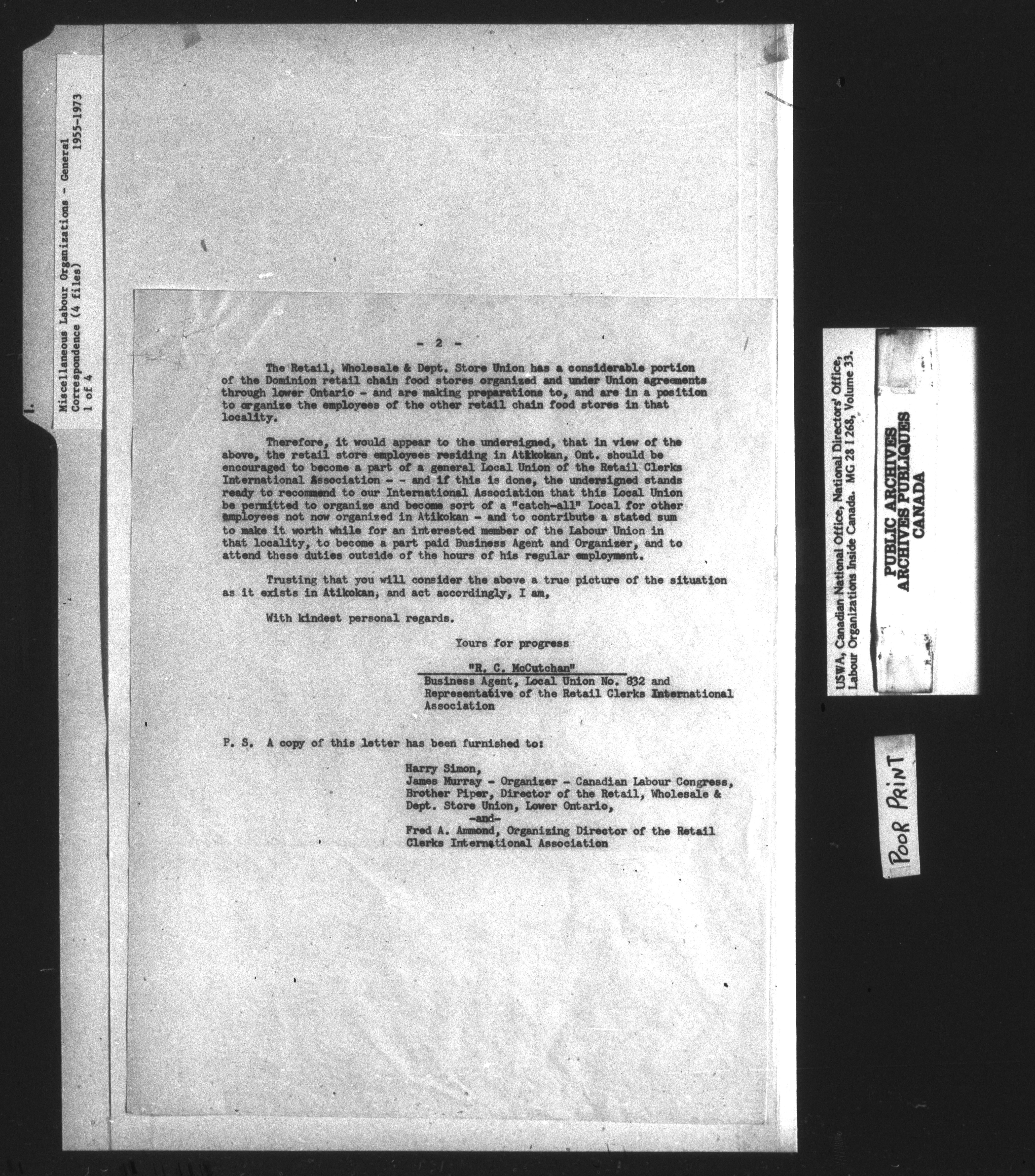 United Steelworkers of America : National Director's Office, Labour Organizations inside Canada - 13128