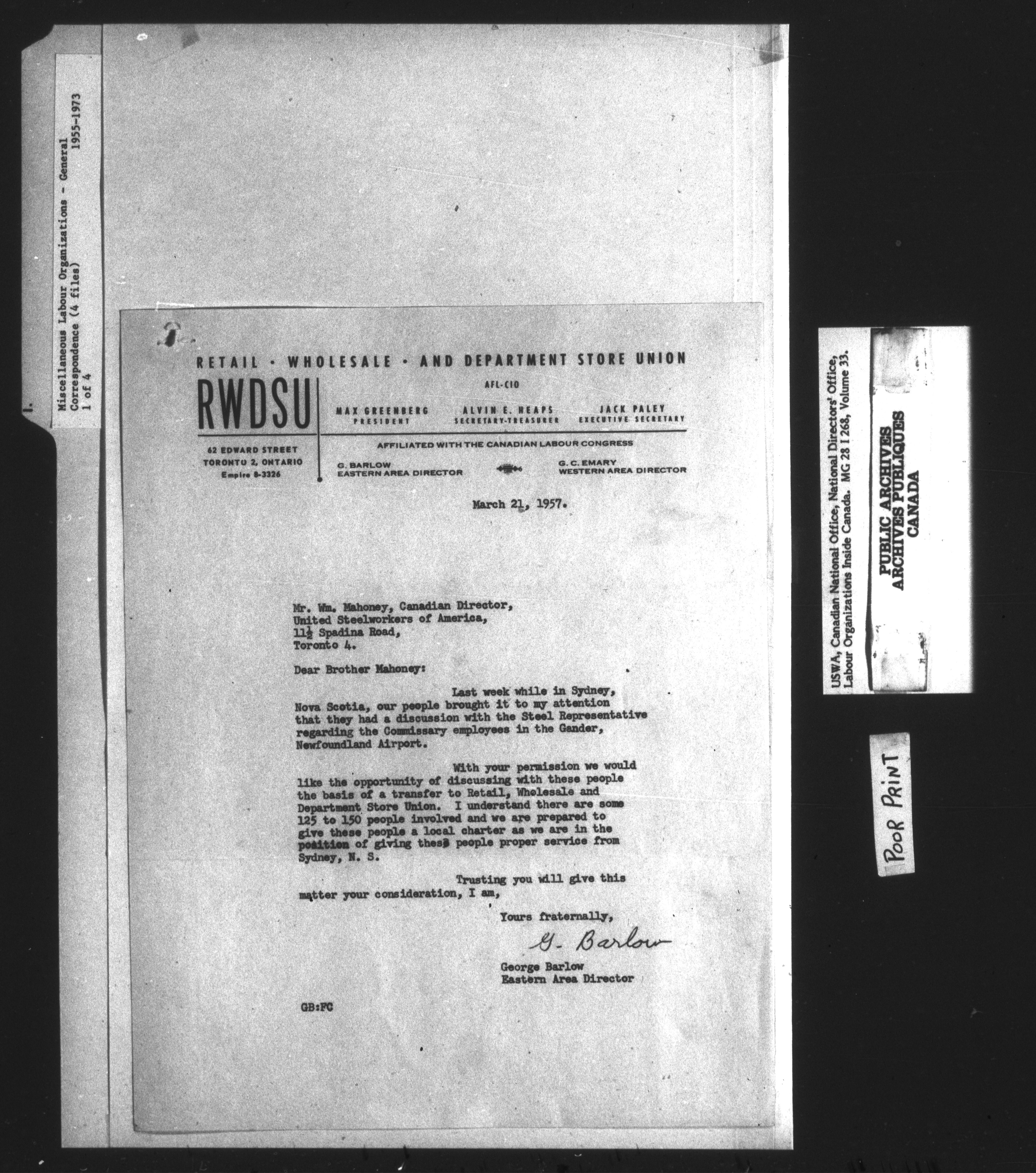 United Steelworkers of America : National Director's Office, Labour Organizations inside Canada - 13128